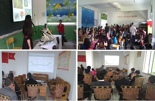调研期间共开展了三大主题讲座。4月16日,赵由才教授在祜水村小学开展了“小手拉大手,垃圾分类齐动手”讲座,给不同年级的小学生讲解了垃圾分类知识并动员他们日后和爸爸妈妈一起做好垃圾分类。4月18日,赵由才教授在石狮村村委会为当地村领导与村民分别做了农村环境卫生讲座和生活垃圾卫生填埋的讲座,以期引导山区居民积极主动改善当地环境卫生状况。这些讲座不仅起到了科普作用,也有利于即将开展的农村生活垃圾源头分类收集示范工程的运行。
