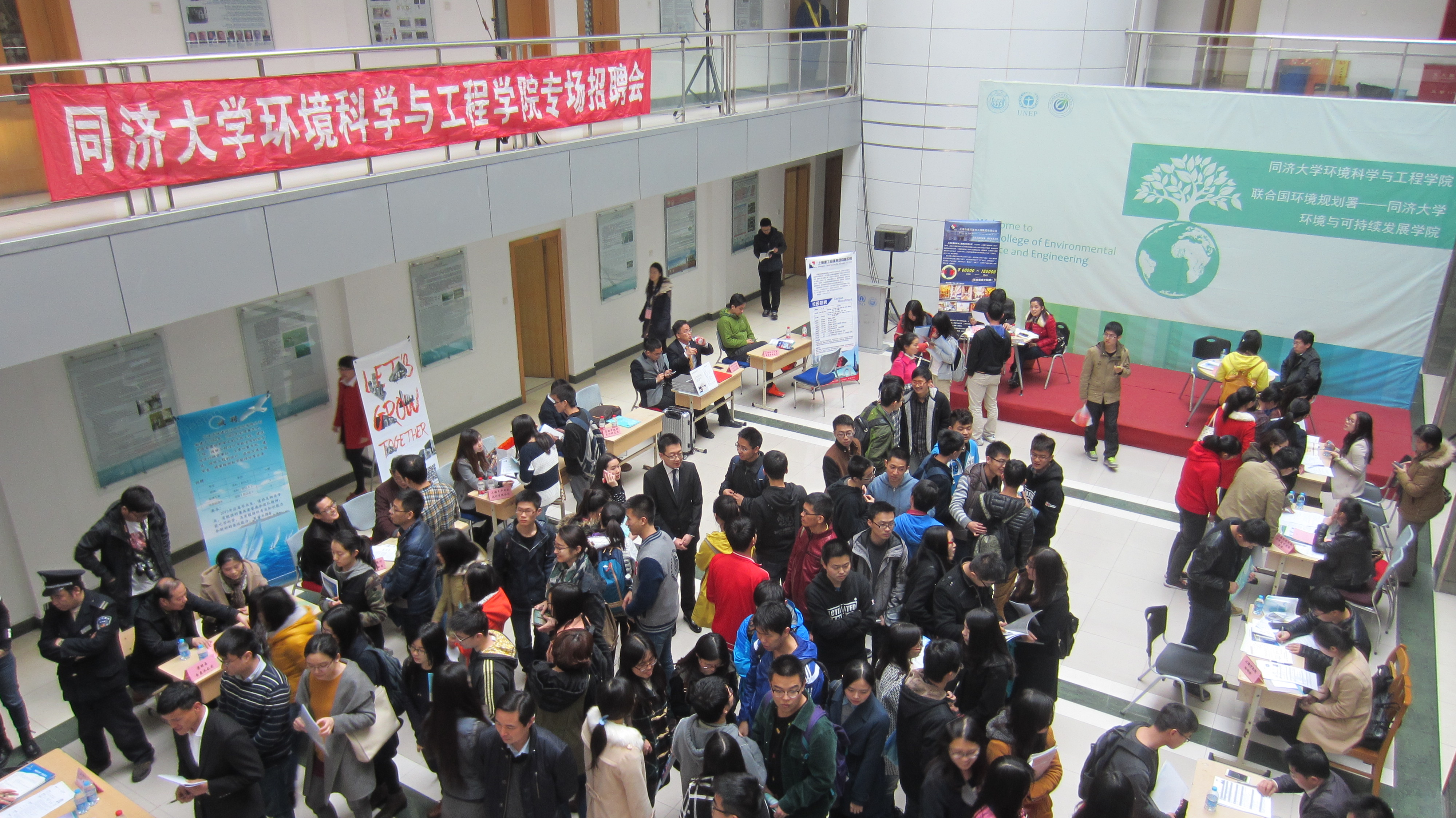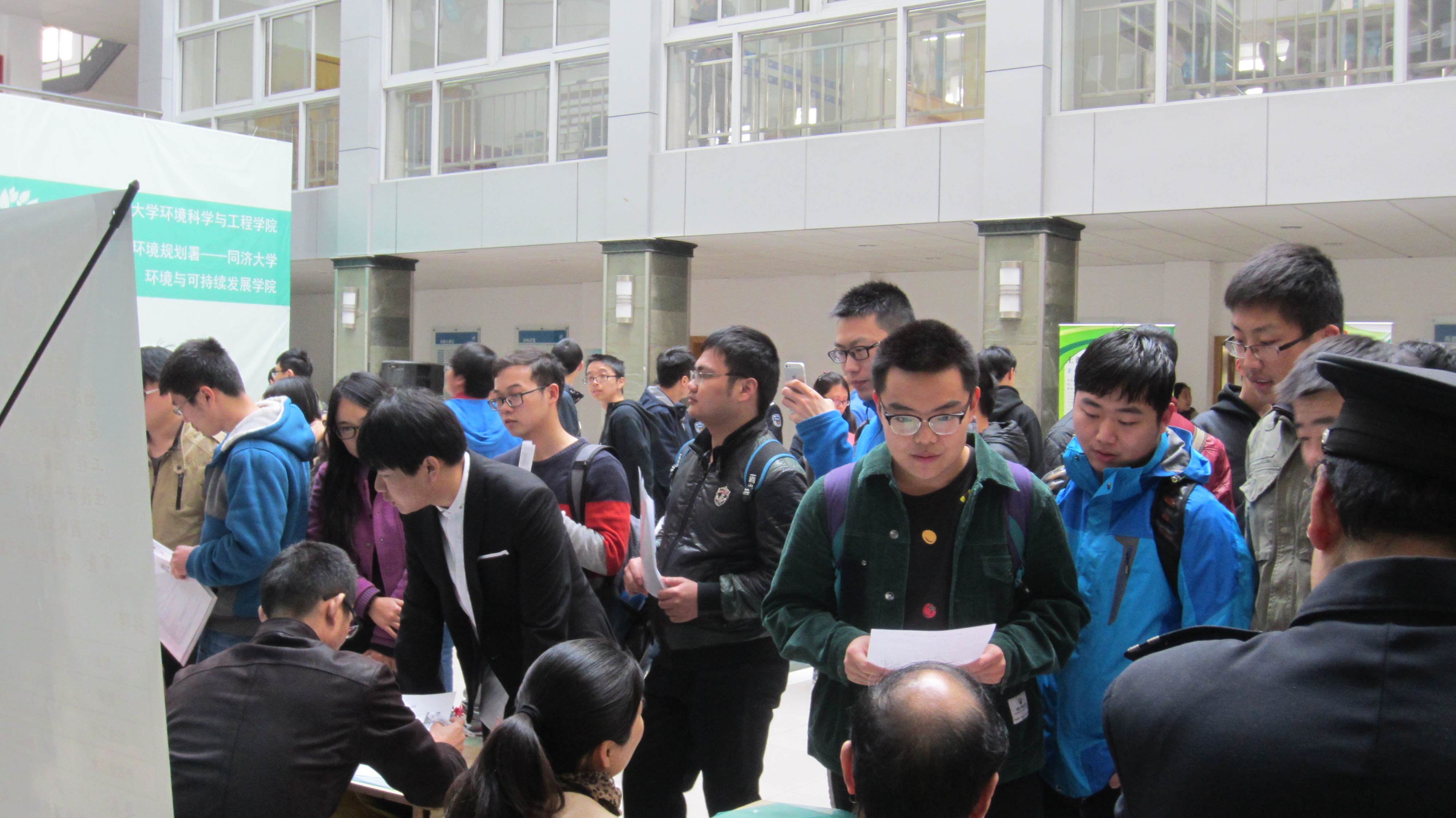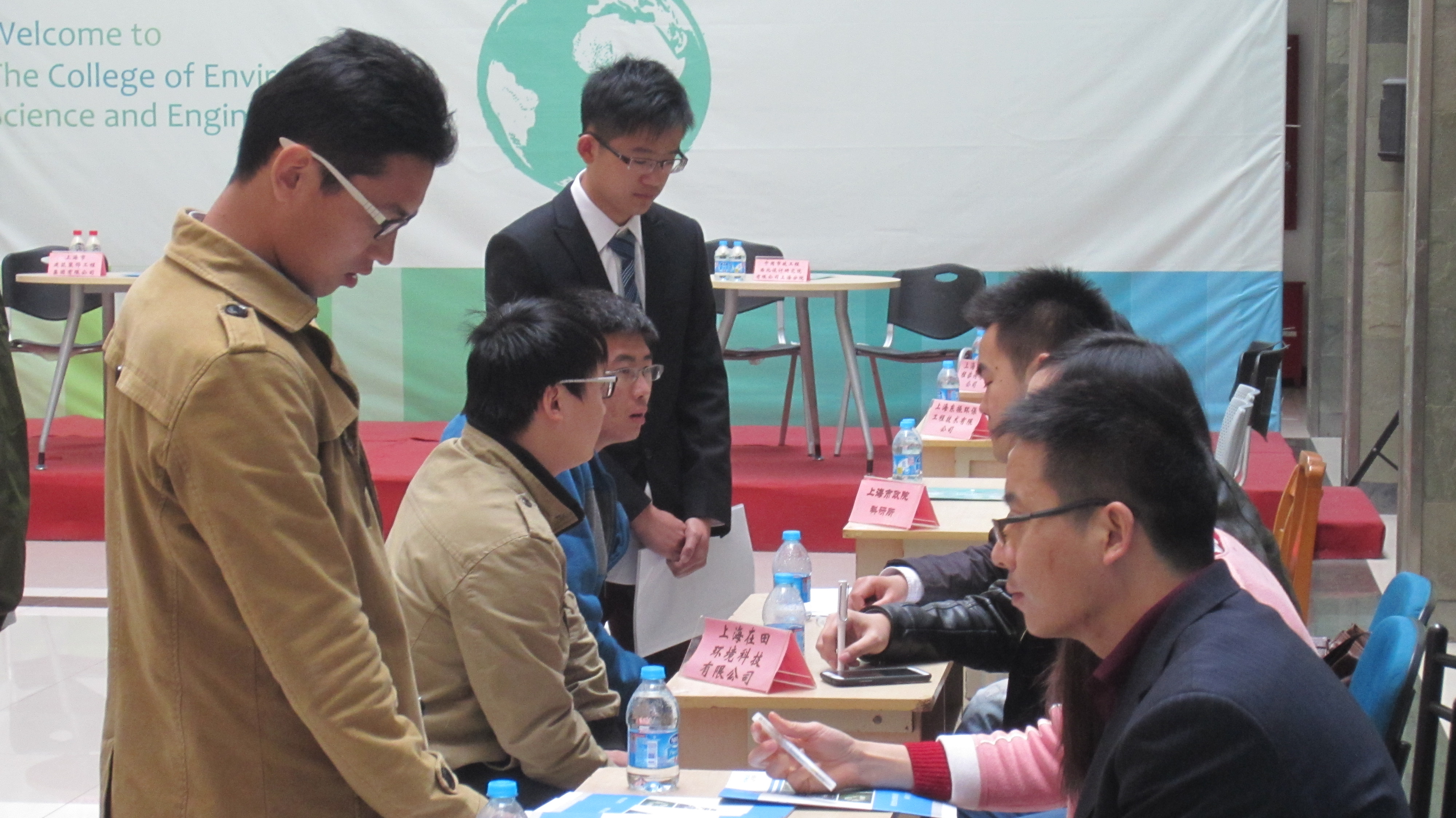 为应对严峻的就业形势,促进我院大学生就业,在院领导和校就业指导中心的支持与帮助下,学工办辅导员通过发动历年积累的用人单位,邀请到了约20余家环境相关企业,于2015年3月24日下午,举办了2015届毕业生专场招聘会,为学生和单位搭建了一个自由交流的平台。