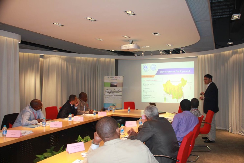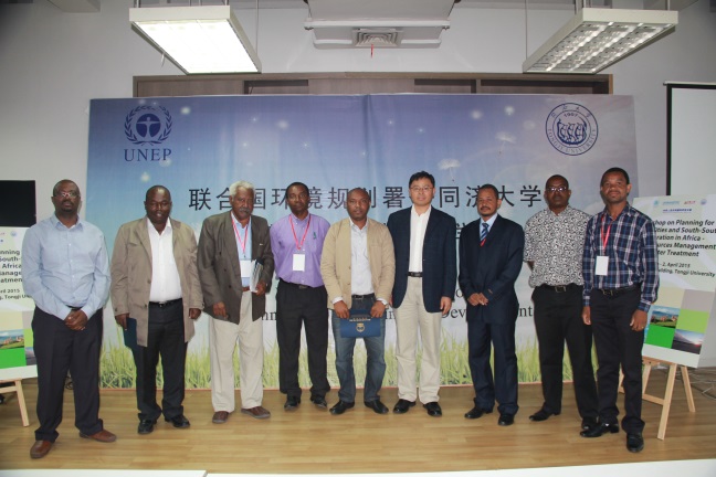 结业典礼上,环境学院副院长,联合国环境署-同济大学环境与可持续发展学院副院长李风亭教授对参加此次研修班的学员表示祝贺。随后,就中国城市饮用水处理技术和工艺进行了汇报,阐述了水处理化学药剂的生产和应用,并对下一步合作提出了展望。来自肯尼亚内罗毕市水务局的Philip Githii Gichuki回顾了同济大学与内罗毕水务局的合作历程,并对同济大学在饮用水处理、生活污水处理、工业废水处理等技术转移和能力建设上的合作表示感谢。可持续发展学院副院长王信博士以中国“一带一路”为核心,重点介绍了上海在城市发展和规划上的经验。