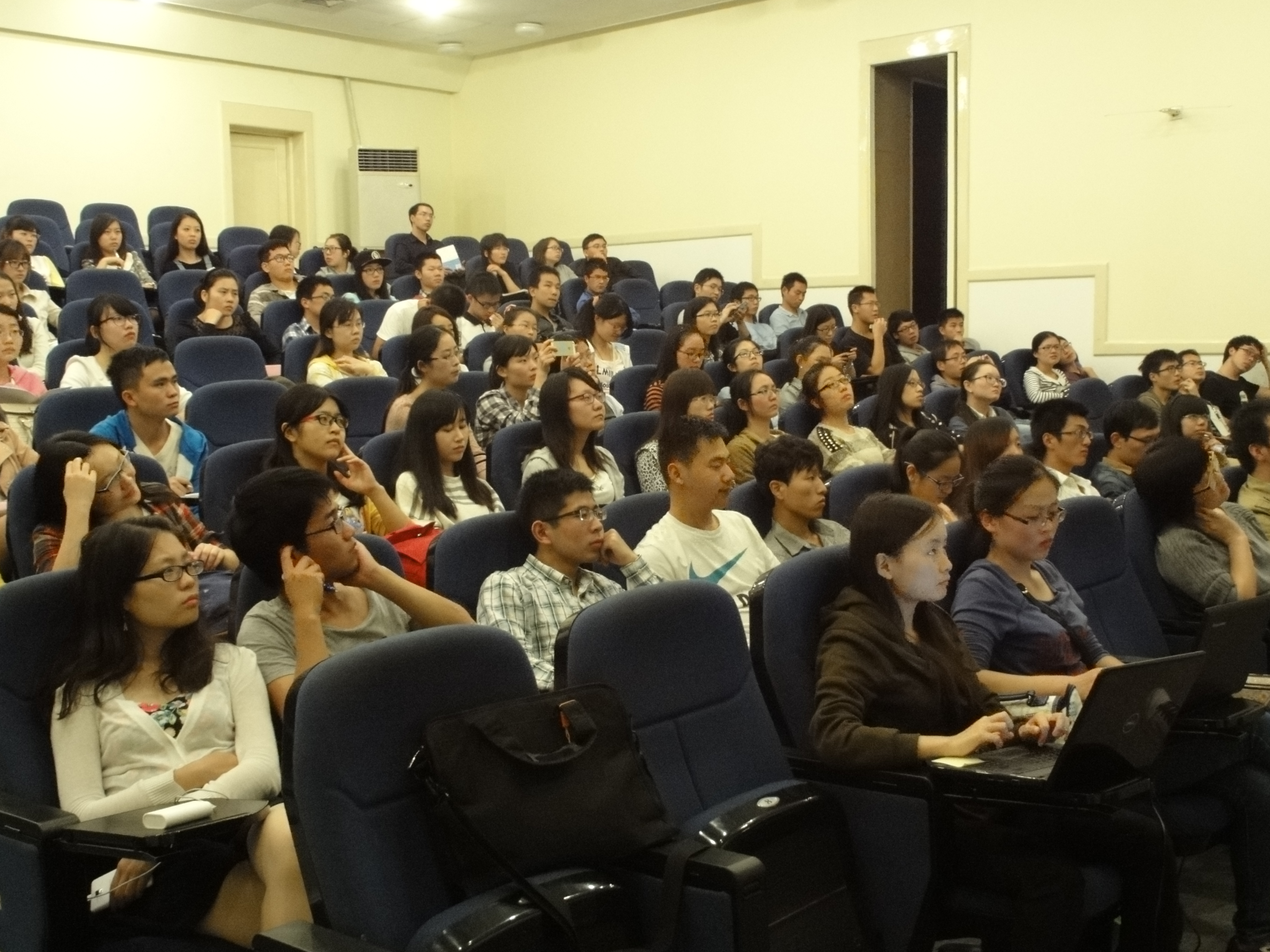 2014年10月19日晚6:30,逸夫楼二楼演讲厅门口人头攒动,由环境学院研分会学术部主办的“老生畅谈,同新共济”新老生交流会隆重举行。此次活动受到了院内新老生的极大关注,活动当日会场座无虚席,同学们踊跃交流,气氛热烈!