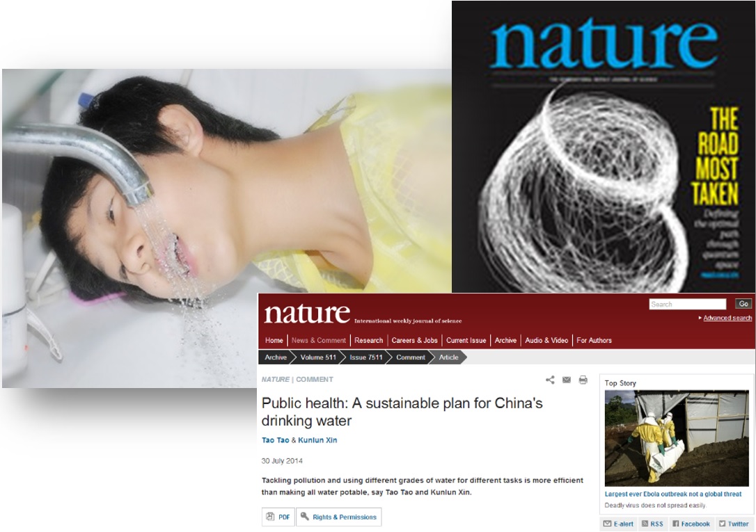 2014年7月31日最新一期的《Nature》杂志刊登了我院市政工程系陶涛和信昆仑老师共同撰写的评论文章《A sustainable plan for China's drinking water》。