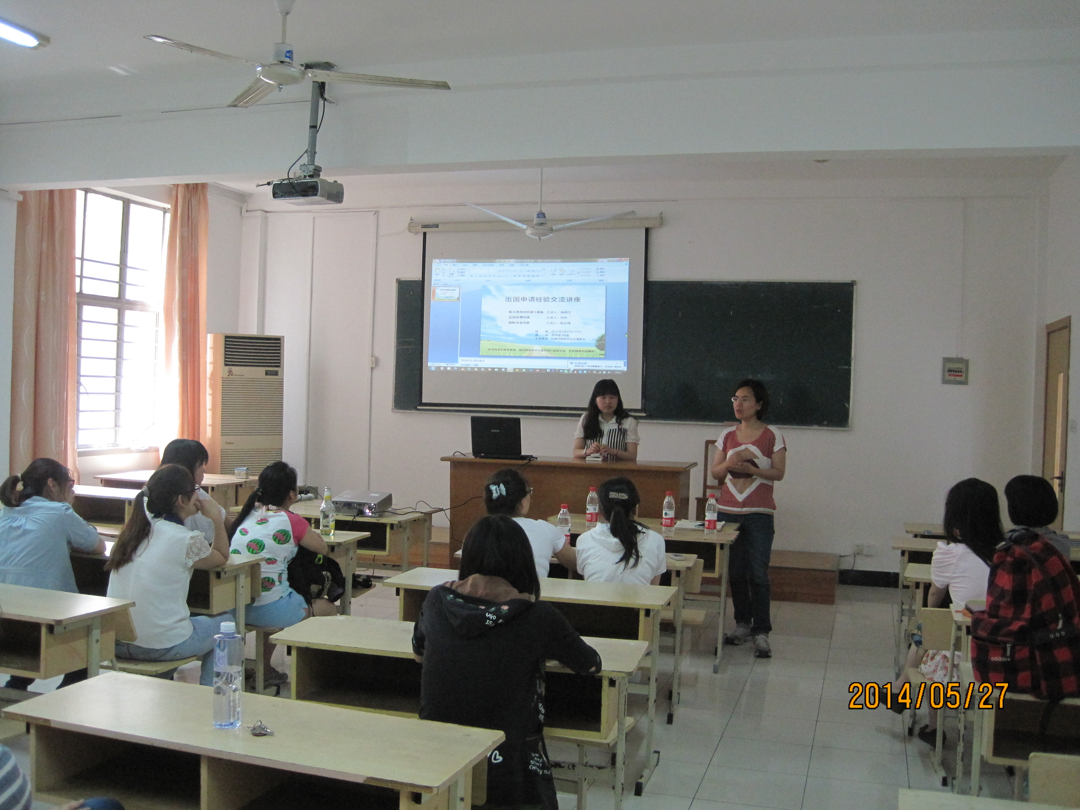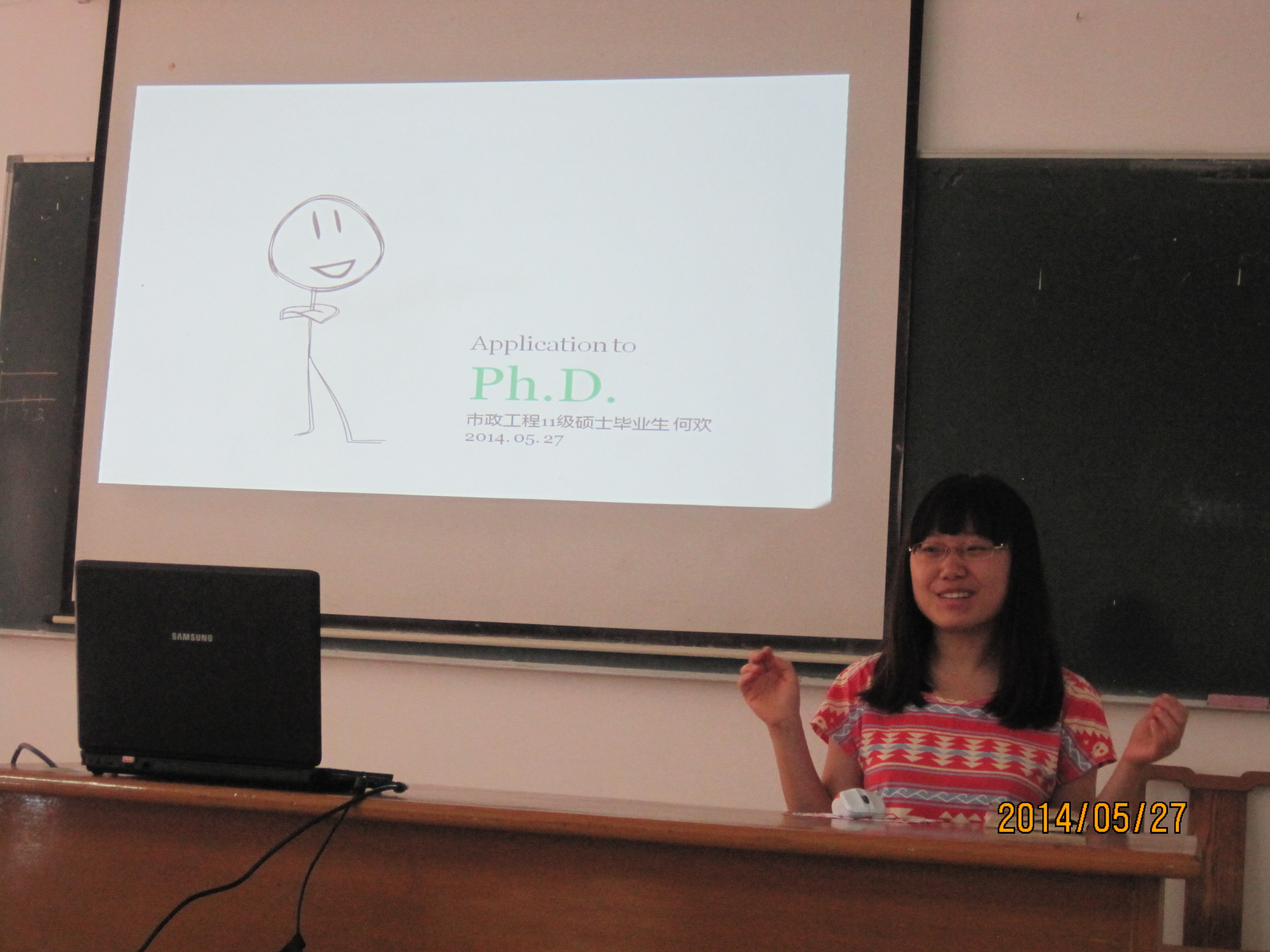 2014年5月27日下午,由环境学院研究生会博委会举办的出国经验交流讲座在环境科学与工程学院明净楼109教室成功举办,本次讲座由三位优秀的同学就自身申请出国的经历与同学们进行了分享,她们分别为13级的博士生梅晓洁,11级硕士生何欢和12级的博士生陈启晴。
