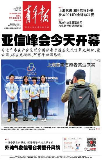 网上有关新闻:http://www.baidu.com/link?url=pMv2odO2_U8quyn84mH9pWmdhj0pHDBMOv-RmjKZiuuEl_oX94baurcDUey6ZWM6Rw7necWmXKjQ3aGJV1FFcq&wd=%E4%B8%8A%E6%B5%B7%E9%9D%92%E5%B9%B4%E5%BF%97%E6%84%BF%E8%80%85%E7%AC%91%E8%BF%8E%E6%9D%A5%E5%AE%BE&ie=utf-8&tn=baiduhome_pg&f=8&inputT=51550&bs=%E9%9D%92%E5%B9%B4%E6%8A%A5%E4%BA%9A%E4%BF%A1%E5%B3%B0%E4%BC%9A%E5%BF%97%E6%84%BF%E8%80%85