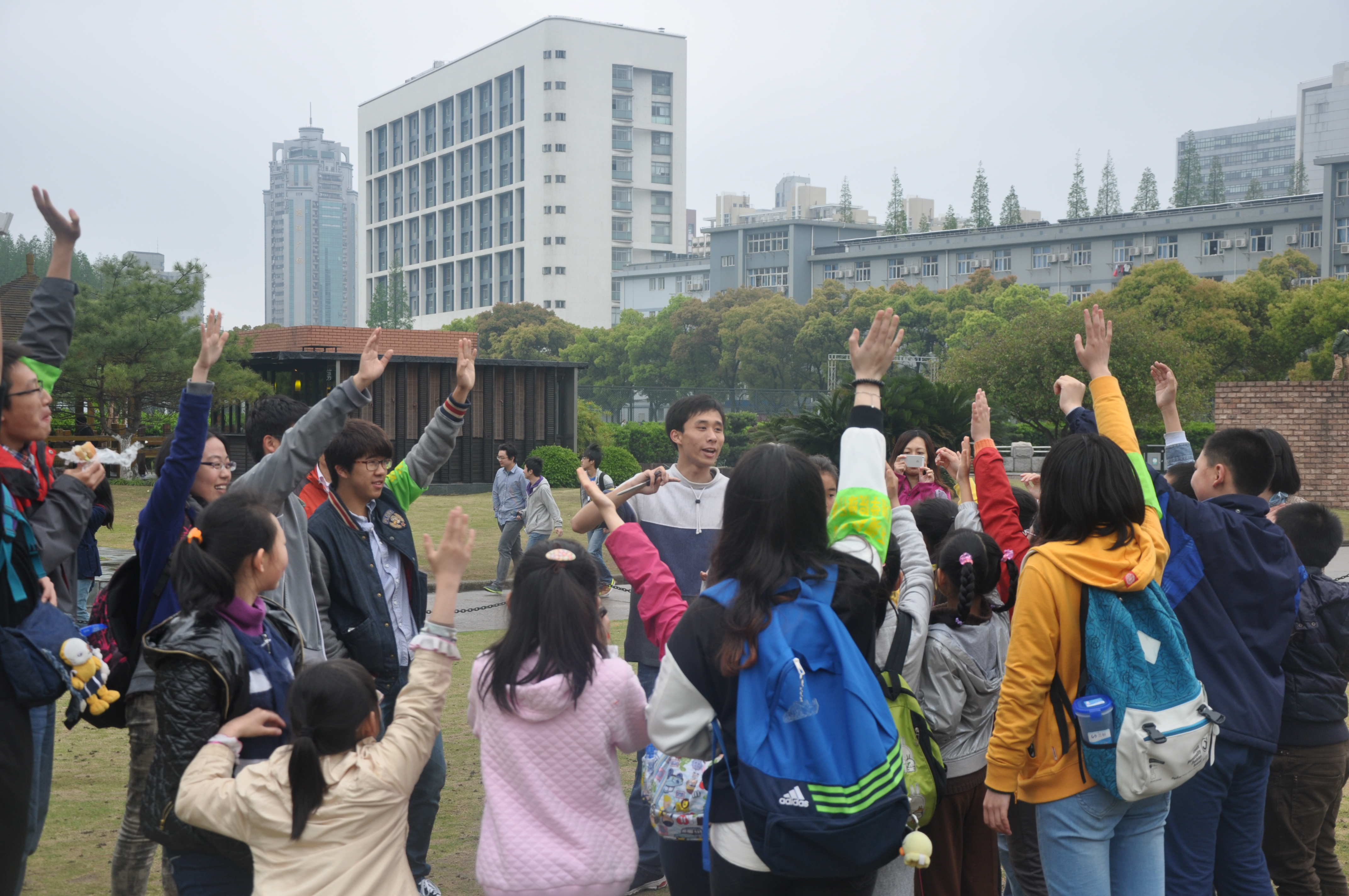 2014年4月13日,同济校园迎来了曲阳路第四小学的小学生们,他们在环境学院“绿行者”志愿者同学们的引领下,畅游同济,漫话环境。