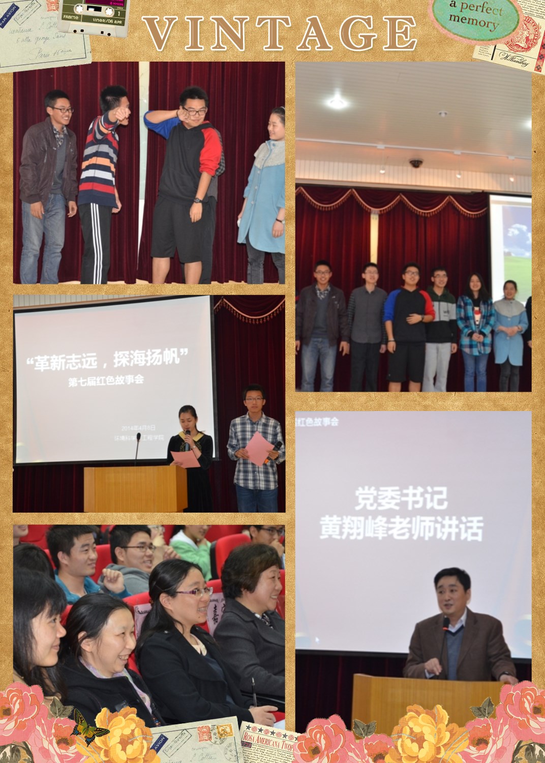 2014年4月8日中午,在我院明净楼121报告厅,由环境学院学生党总支筹备的“革新致远,探海扬帆” 环境学院学生党总支第七届“红色故事会”隆重举行。同济大学特邀组织员、原体育部书记杨梅芳老师、我院党委书记黄翔峰老师、党委副书记钱昕老师、学工办主任贺贝贝老师、团委副书记王宁老师,以及本科生、研究生党员、预备党员和积极分子参加了本次活动。