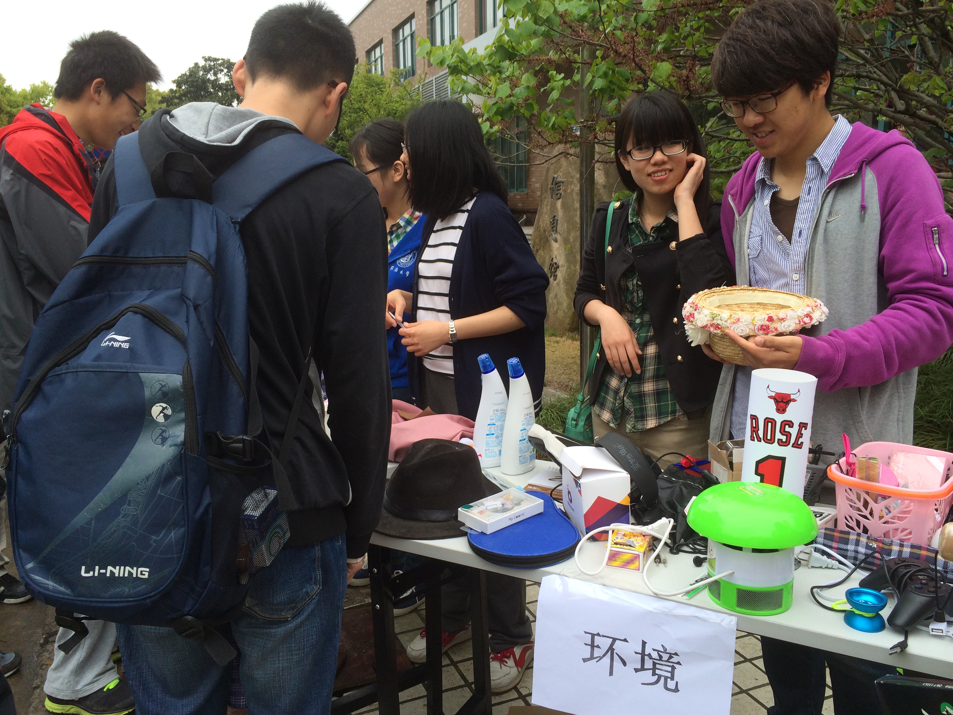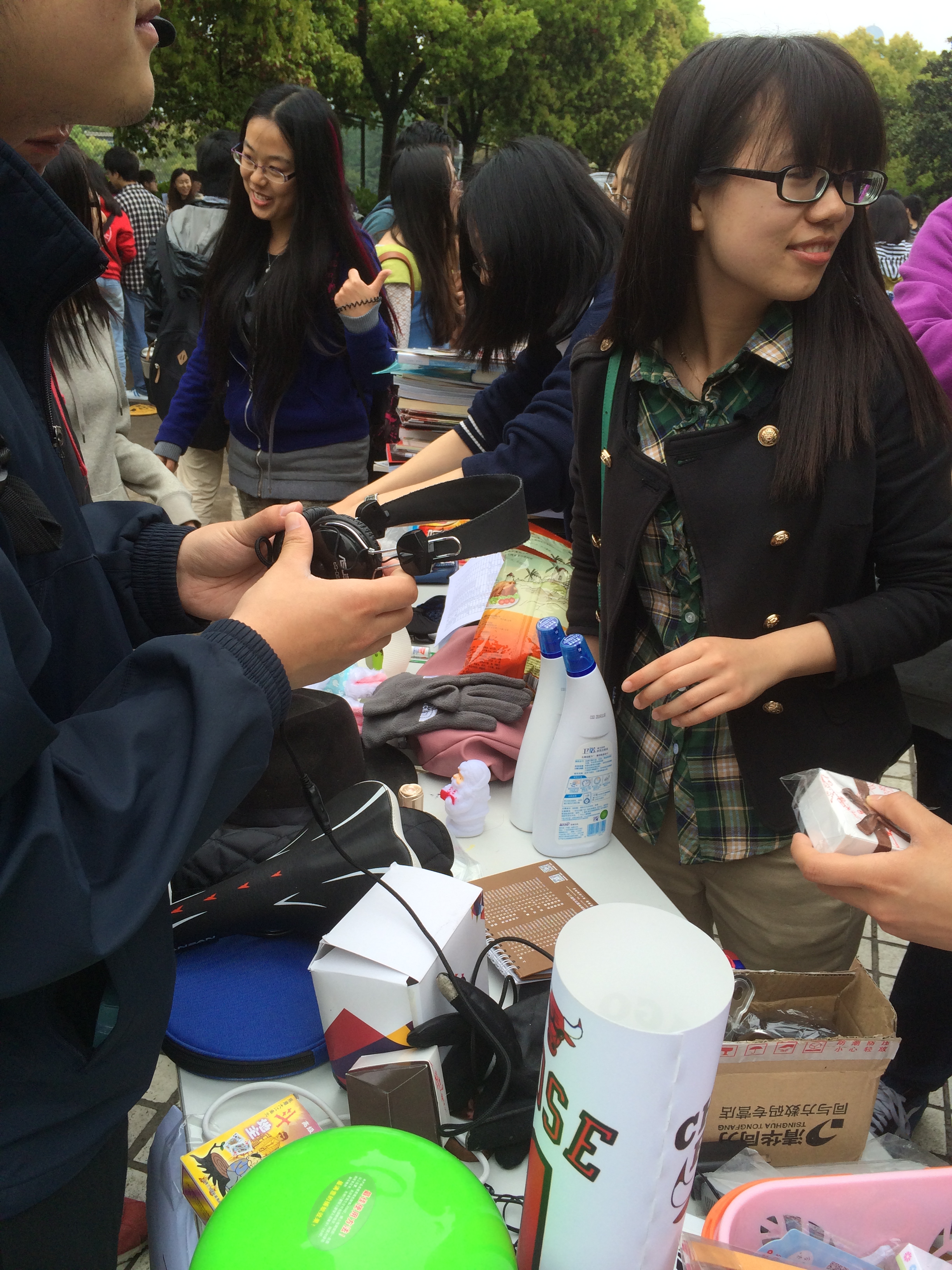 虽然这两天天空飘洒着小雨,但这丝毫不影响同学们义卖的热情。在南大道,各个学院都将收集到的物品整齐摆好,许多同学听说义卖活动后都来购买自己需要的东西。他们纷纷表示,在获得自己所需要的物品的同时能够为慈善做一份小小的贡献,他们感到非常开兴。