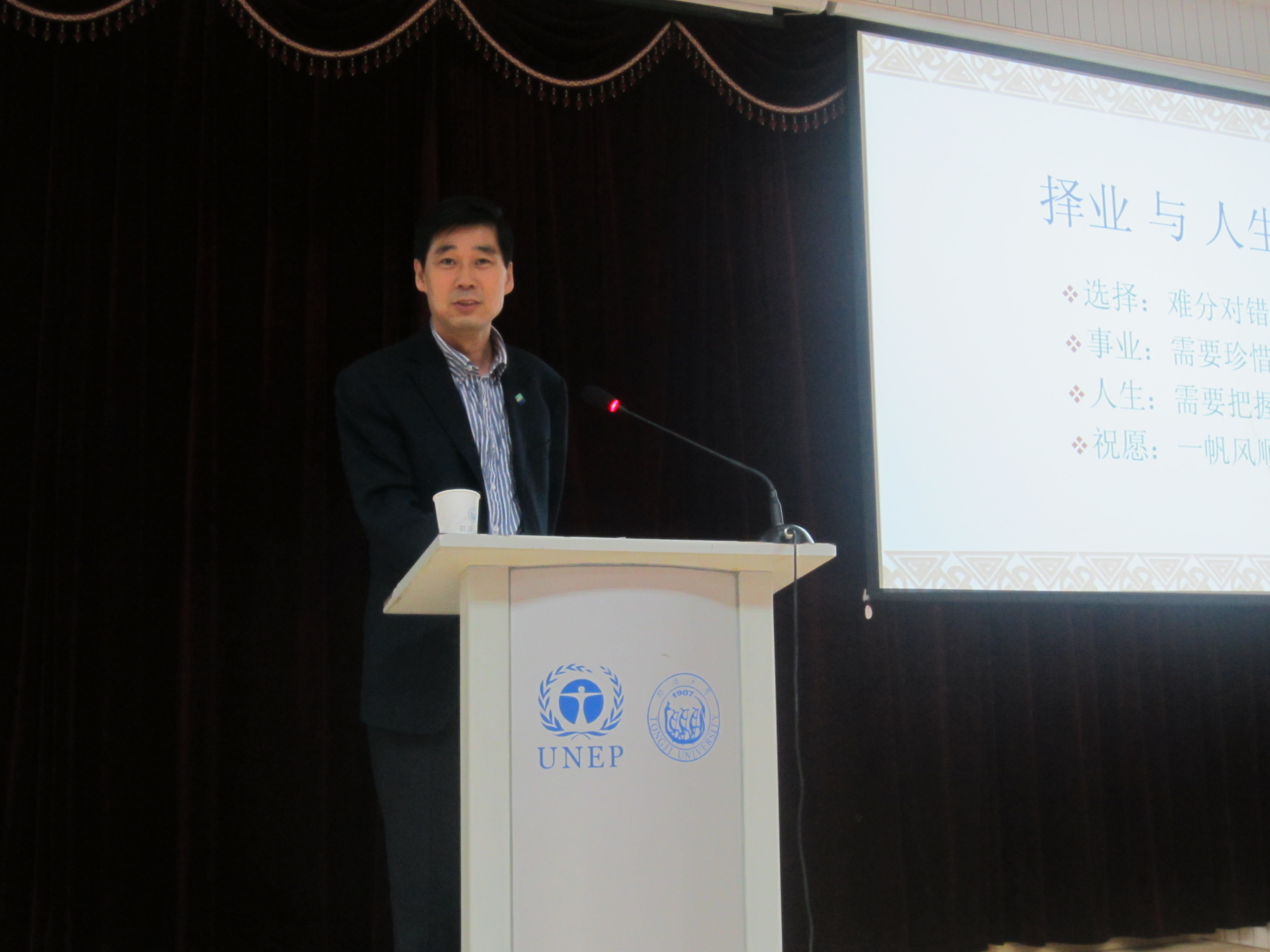 讲座开始,钱学明先生便向台下就坐的师生深深鞠躬,良好风度获得了长时间的掌声。讲座由钱学明先生的亲身经历展开,从他在同济求学的时光一直到走上工作岗位并从业三十多年的历程,钱先生用风趣幽默的话语和大家分享了如何择业、如何自我推荐、如何适应社会、如何争取成功等话题,给在座的听众带来深思。谈到如何择业的时候,钱先生表示,选择职业首先用“爱”来衡量,“爱不爱”影响到后来的“好不好”,而同样的,把握好每个机会,用奋斗向上的态度面对,开好头,干好活,把好度,人生才能灿烂千阳。讲座最后,钱学明先生对我院的学生表达了他作为学长的祝愿,他祝福每一位环境学子能在这片广阔天地里,大有作为。