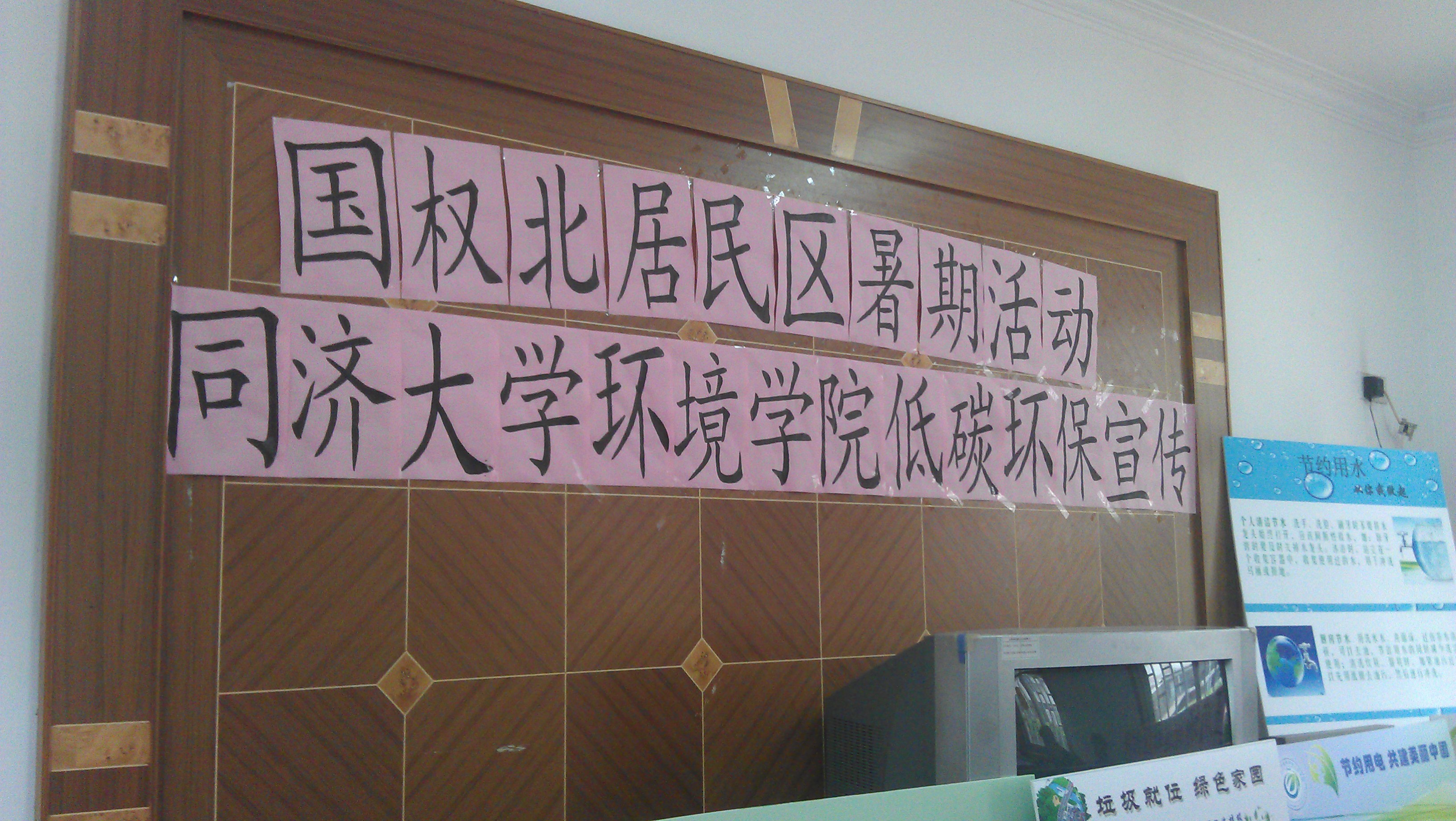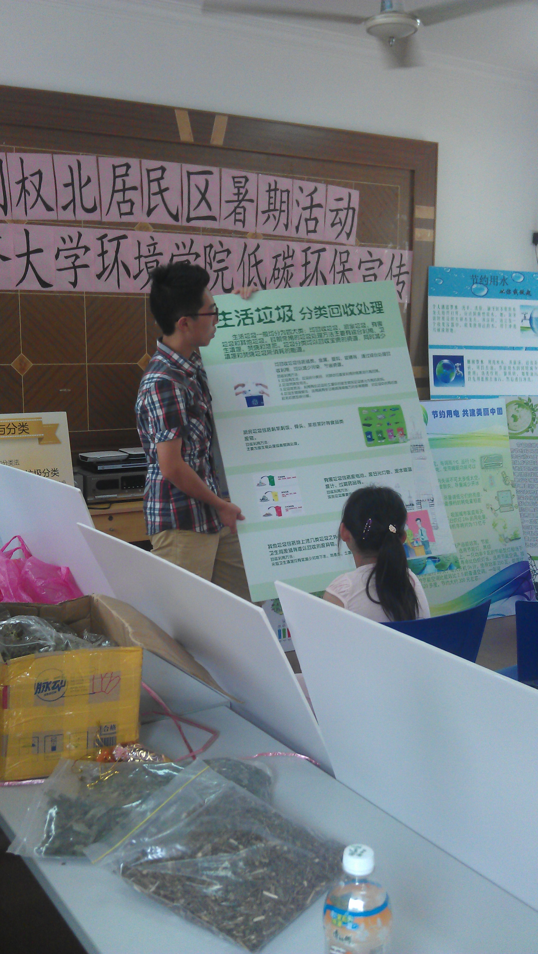 2013年7月5日上午,由我院团学联志愿服务部带领入党积极分子志愿者来到共建单位-国权北路居委开展“绿色中国梦”之推广垃圾分类的志愿活动。