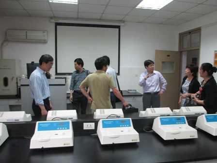 2013年5月23日,华东理工大学资环学院院长刘勇弟教授、学院党委书记程里老师以及新疆师范大学的老师等一行10余人到我院实验教学中心进行了参观和交流。