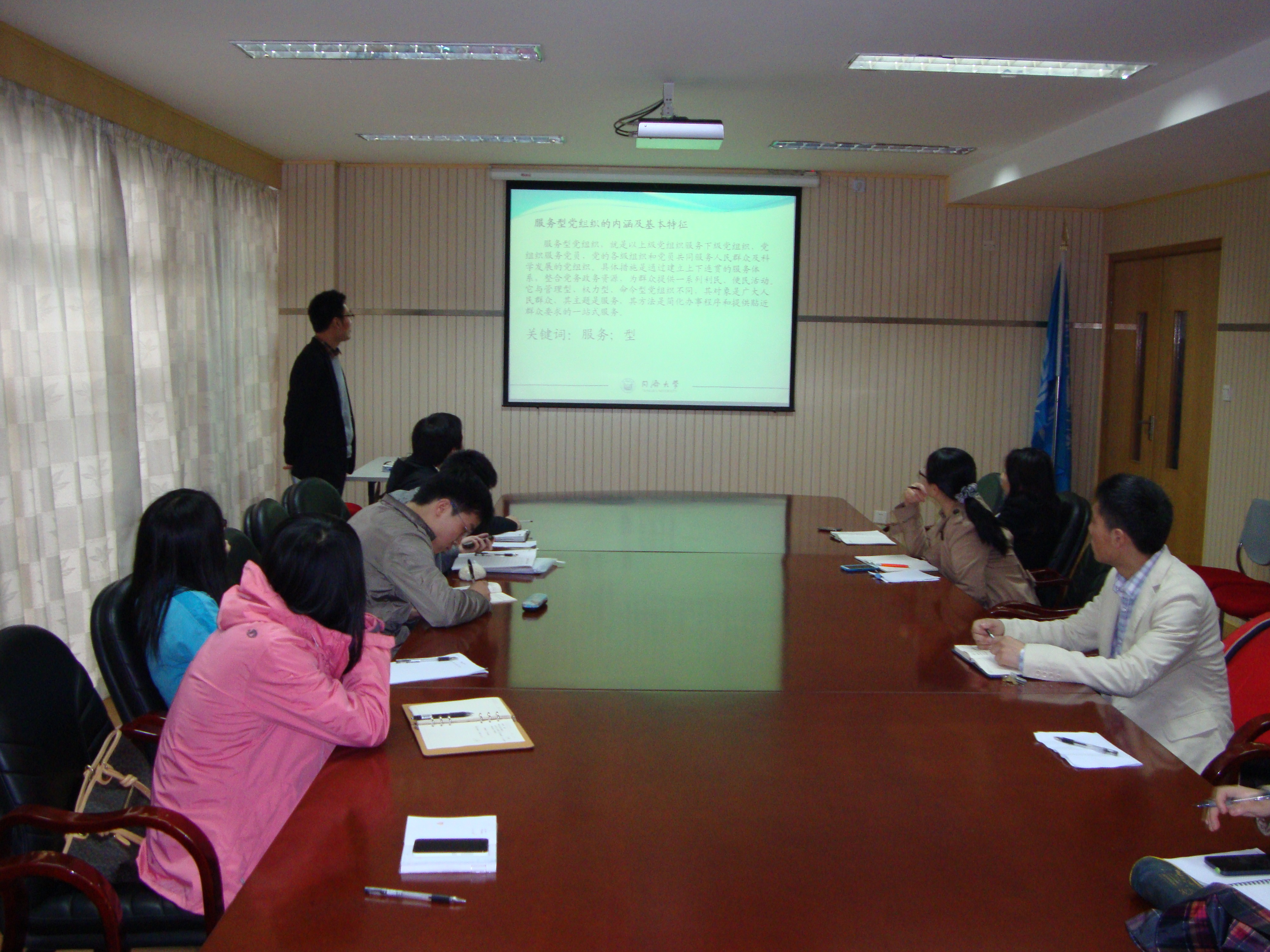 2013年4月23日上午,我院学生党总支在118会议室举行“创建学习型、创新型、服务型”研究生党支部”研讨会。我院党委副书记钱昕老师,学工办主任贺贝贝老师以及各研究生党支部参加了会议。