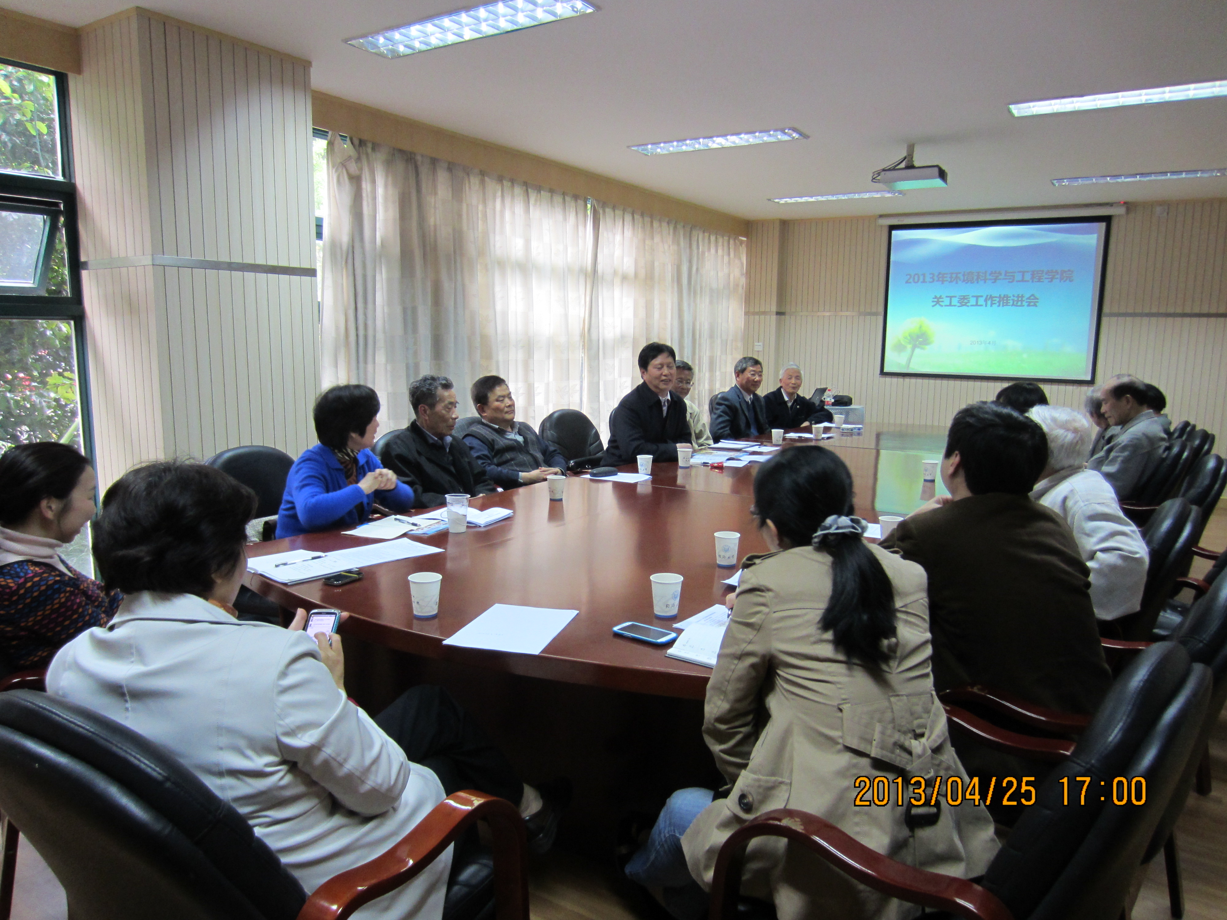 2013年4月25日下午,我院关工委在明净楼118会议室举行2013年环境学院关工委工作推进会。同济大学关工委常务副主任金正基老师,同济大学关工委副主任陈立丰老师,我院党委书记、关工委主任黄翔峰老师,院党委副书记钱昕老师,关工委常务副主任王怀琳老师以及其他十多名关工委老同志共同参加了会议。