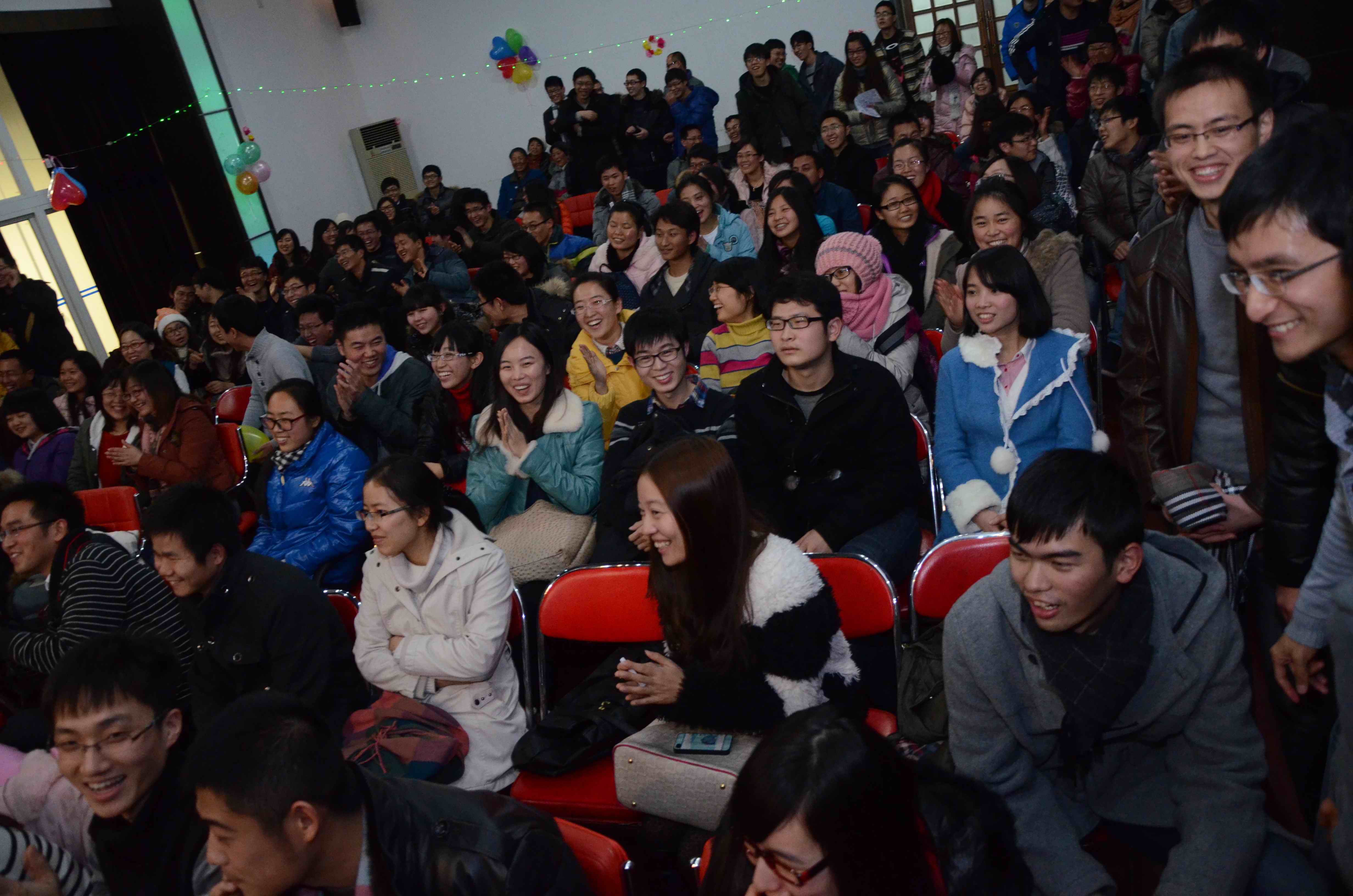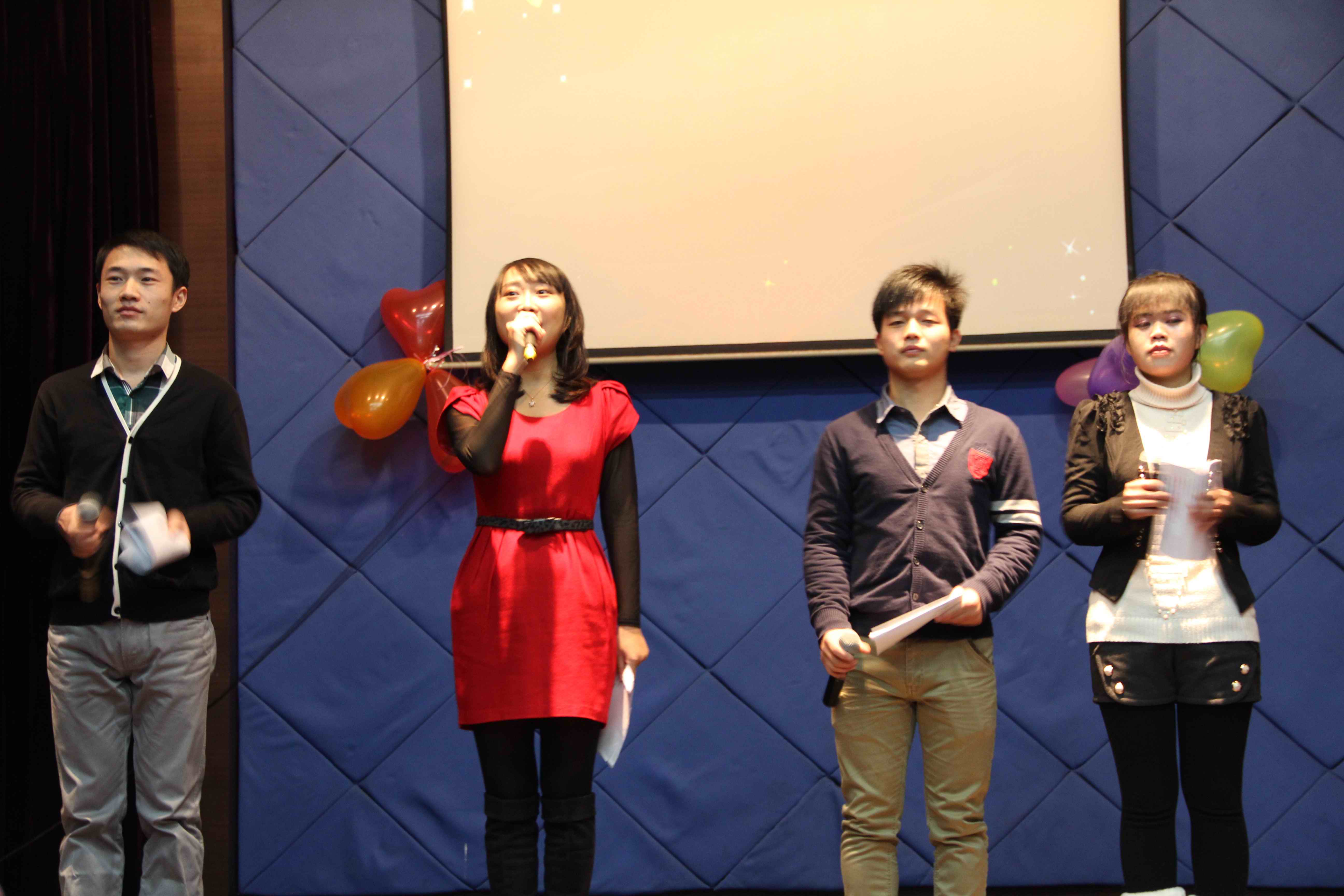 12月22日晚上7点,同济-复旦大学环境学院双蛋晚会在同济新村的工会俱乐部举行,这场以“重生后的狂欢”为主题的晚会同时也是同济大学和复旦大学环境学院的一次联谊。同济大学环境学院的张博老师、李攀老师来到了晚会现场,随后张博老师为本次晚会致辞,预祝晚会顺利进行。晚会上,同学们各显其能,展示了“环境人”独特的风采。晚会在舞蹈《梦想高飞》的欢快节奏中拉开帷幕,随后的吉他弹唱《我的歌声里》表演者用他们的歌声征服了全场,小品《高校辩论》在带来欢乐的同时也给人以思考,古筝笛子合奏《沧海一声笑》让观众体验古典美之余也想起了那个江湖,机械舞《poping show》动感的音乐以及精湛的表演将现场气氛带入高潮,同济大学十大歌手龚超自弹自唱《春天里》,浑厚的嗓音让现场观众如痴如醉,音乐小品《圣诞结》带来浓浓的圣诞气氛,舞蹈《失恋战线联盟》并不是一群失恋的人在跳舞,带给观众快乐才是真谛,而留学生表演的吉他弹唱带大家走进尼泊尔,领略他国的名族风情,歌曲串烧《庄生晓梦》有笑点、有惊叹、有感动。节目之间穿插有游戏和抽奖环节,全面地调动了在场观众的情绪,让每个人都有机会参与其中,丰厚的奖品也让大家有提前过节的感觉。最后,晚会在全体合唱《爱因为在心中》的歌声中落下帷幕,晚会顺利结束。此次晚会不仅增加了环境学院研究生之间的交流,更增进与兄弟院校之间的友谊。