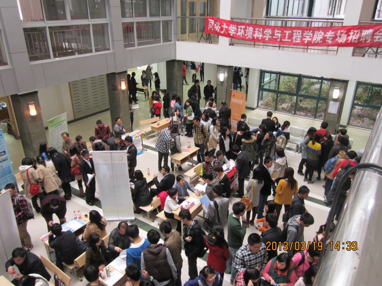 下午两点,来自我院的2013届本科生、研究生毕业班的300余人参加了本次招聘会,此外,100余名大三本科生及研二硕士研究生也来到现场应聘实习岗位。招聘会同时吸引了土木、电信、机械、经管等其他学院的学生。会场热闹非凡,同学们心怀憧憬和热情,带着简历,甄选合适的单位和岗位。本次招聘会为用人单位和学生搭建了交流与沟通的平台,学生工作办公室的教师精心组织,使得招聘会顺利、圆满进行,反响良好,受到用人单位和毕业生的支持和赞扬。