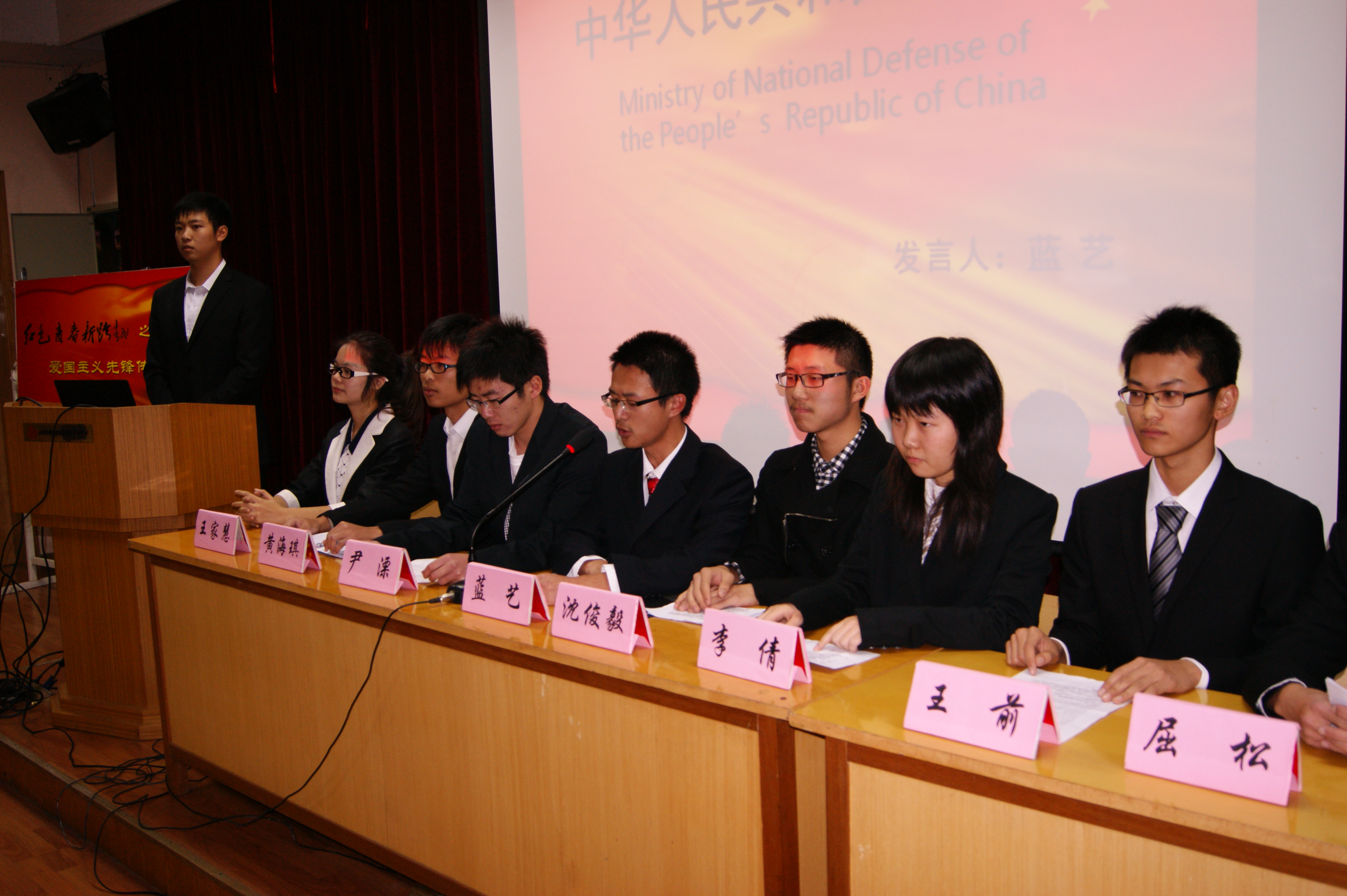 2012年11月29日晚6:30,环境科学与工程学院“红色青春新跨越之爱国主义先锋传承”——2011级形势与政策课主题实践活动汇报大会在明净楼121报告厅举行。环境科学与工程学院党委书记黄翔峰教授,关心下一代工作委员会王怀琳老师,分团委书记张博老师和辅导员王宁老师作为嘉宾观看了此次汇报表演。