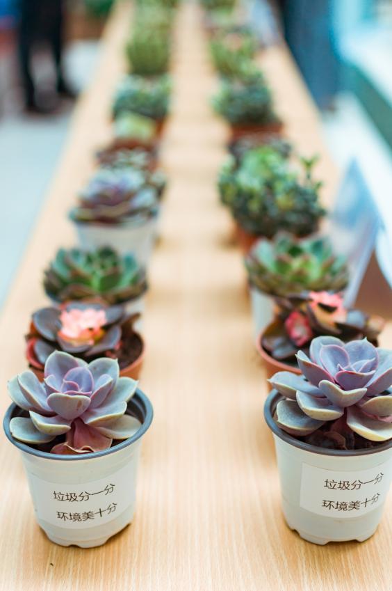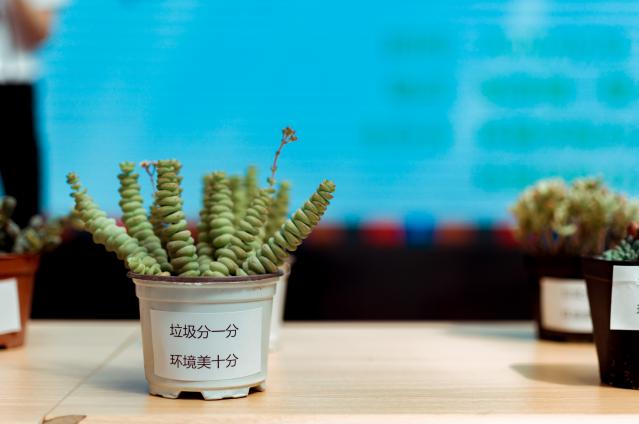 本次知识问答活动的题目集中在日常垃圾分类相关知识及学院垃圾分类相关要求,奖品则是一盆盆品种繁多的绿色小植物。工作人员细心的为每一盆小植物都贴上了垃圾分类的相关标语:垃圾分一分,环境美十分。准备完毕后,一盆盆小植物静静的排列在桌子上,等待着广大师生把它们带走。