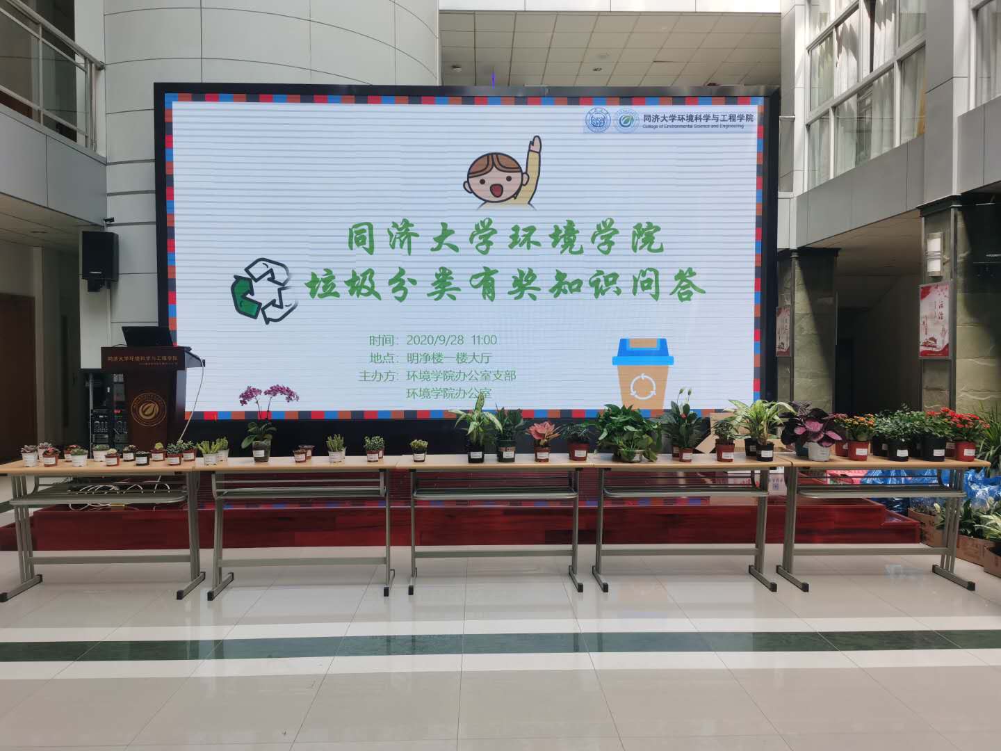 “垃圾分类,我们一直在行动”。上海市垃圾分类自2019年7月1日正式实施起,到目前已经一年有余。在此期间,同济大学环境学院积极落实《上海市生活垃圾管理条例》,制定垃圾分类相关制度,引导学院师生正确投放垃圾,培养垃圾分类习惯,营造出良好的校园环境。为持续推广垃圾分类理念,发挥环境人的表率作用,环境学院对楼宇垃圾分类管理方案进行优化和改进,并于9月28日在明净楼一楼大厅举办了垃圾分类有奖知识问答活动。