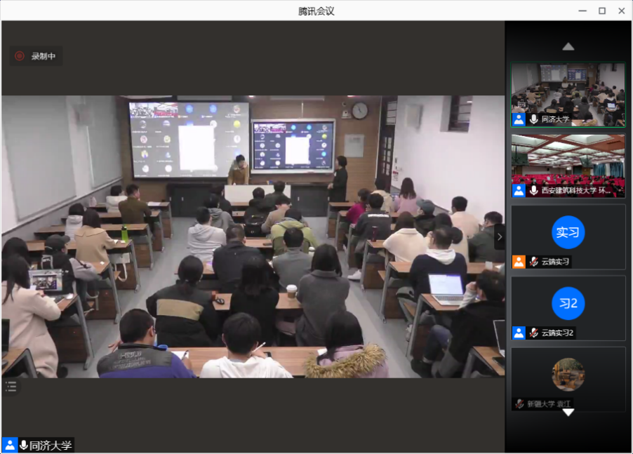 3月16日,“校-企-协云端实习”第六讲在同济大学智慧教室顺利开课,主讲人是同济大学环境科学与工程学院教授、中国工程院院士徐祖信老师,来自全国23个省市自治区、30多所高校3200余名环境学子通过腾讯会议和B站参与了课程学习。同济大学环境学院党委书记柳剑雄莅临现场致辞,同济大学、西安建筑科技大学和河海大学的师生们同步通过智慧教室集中学习,共上一堂课。