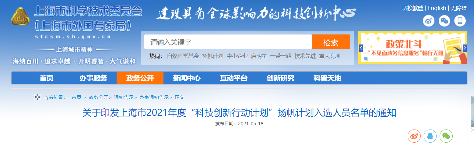新闻来源:http://stcsm.sh.gov.cn/zwgk/tzgs/gsgg/bsgsgg/kjjhxmjggb/20210518/9ecb2e8bc52742488372c9330c9a344f.html
