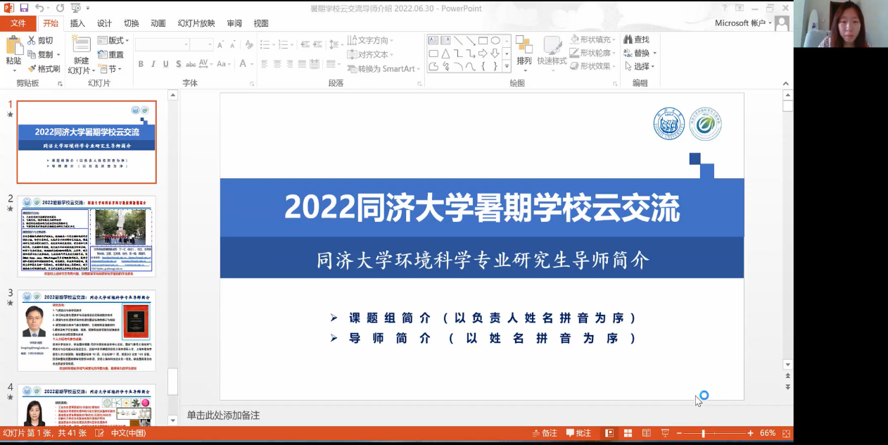 为期四天的活动内容丰富,云报告让人如浴春风,云参观让人身临其境,环境热点问题讨论得如火如荼,而云交流热烈到网络中断。多层次、多维度的活动安排让学员对同济环境科学的学科实力有了更深刻的认识。面试环节中学员们展现了良好的知识积累和科研潜质,给评委老师留下了极为深刻的影响。闭幕仪式上,50名同学获得了优秀学员。学院李星月老师详细介绍了同济大学的推免申报程序。同时,IESD学院的沈佳琦老师对国际课程进行了推介。
