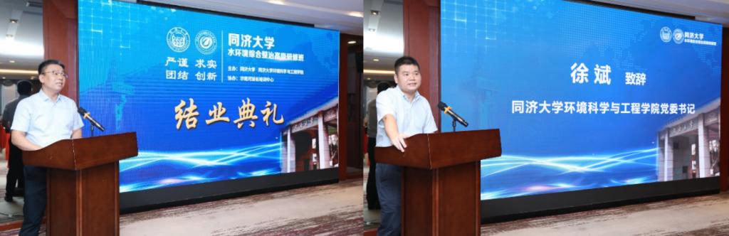课程结束后,二期班结业典礼正式开始,典礼由副院长吴德礼主持。党委书记徐斌在致辞中充分肯定了本期培训班自2020年开班以来的各项工作,表达了对所有学员的殷切希望,期待大家能够秉承“同舟共济”的同济精神,践行“同济天下,崇尚科学,创新引领,追求卓越”的新时代同济文化,学以致用、担当尽责、实干笃行。同时,他对该培训项目后续的可持续推进提出了更高的要求。学院党委副书记黄清辉、陆丽君,郭理桥等为学员们颁发培训结业证书,学员们也纷纷发言、分享收获的同时更表达了对环境系科成立70周年的衷心祝福。