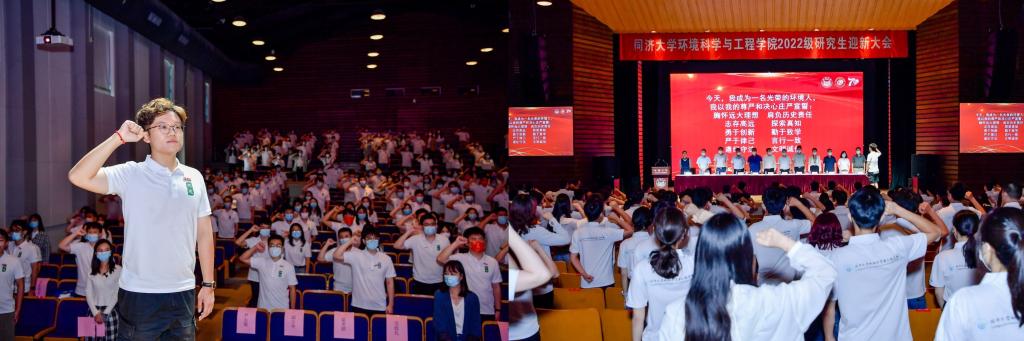 最后全体新生起立,由研究生新生代表郭俊儒同学带领同学们举行庄严的入学宣誓,表达了新生们勇于探索真知,勤于致学,为环境事业奉献的决心。