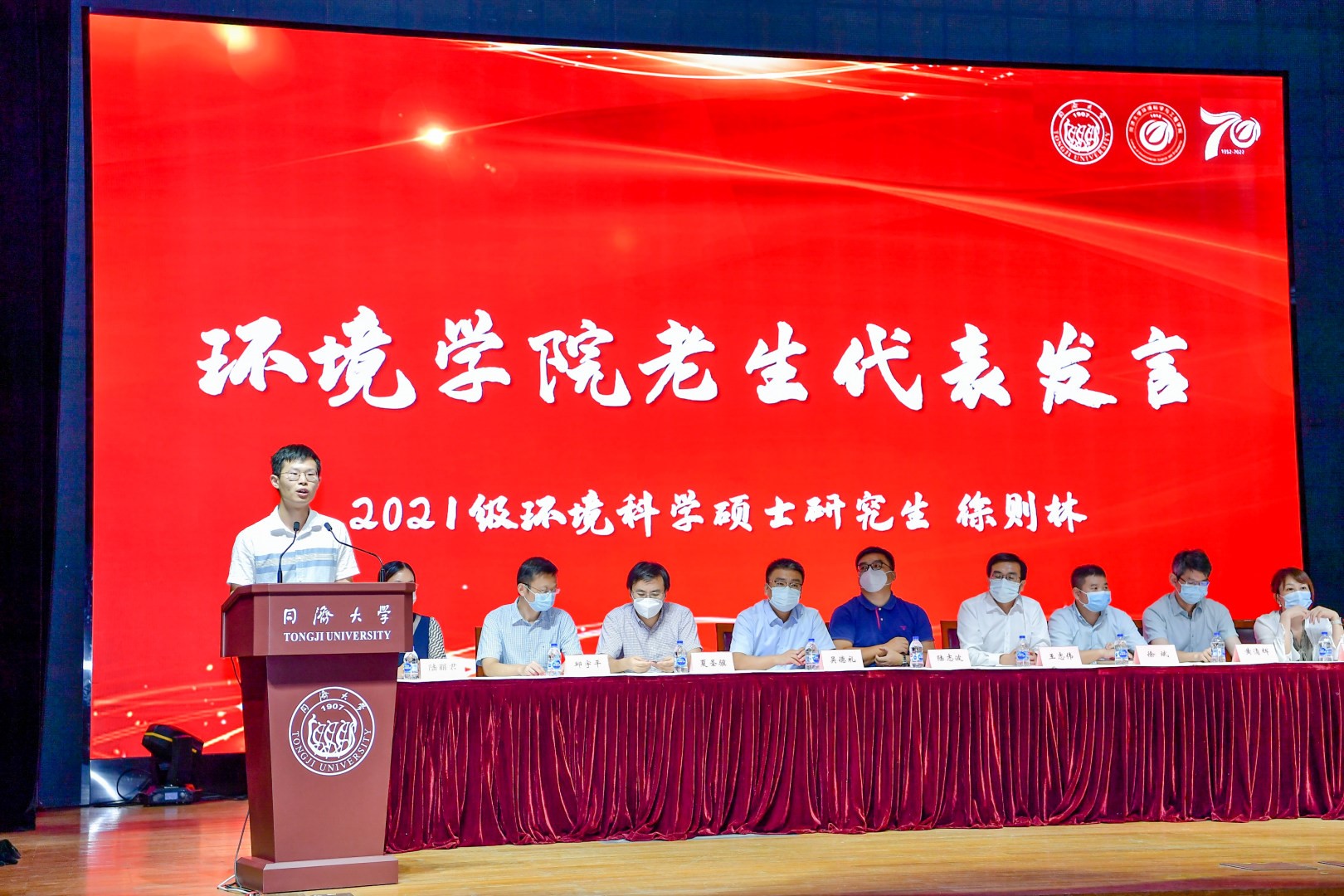 随后,导师代表尹大强教授寄语新环境人,希望他们能够严格要求自己,利用好学校的各类资源,以目标为导向合理安排好研究时间,保持良好的心态和健康,做一个名副其实的同济环境学院研究生。