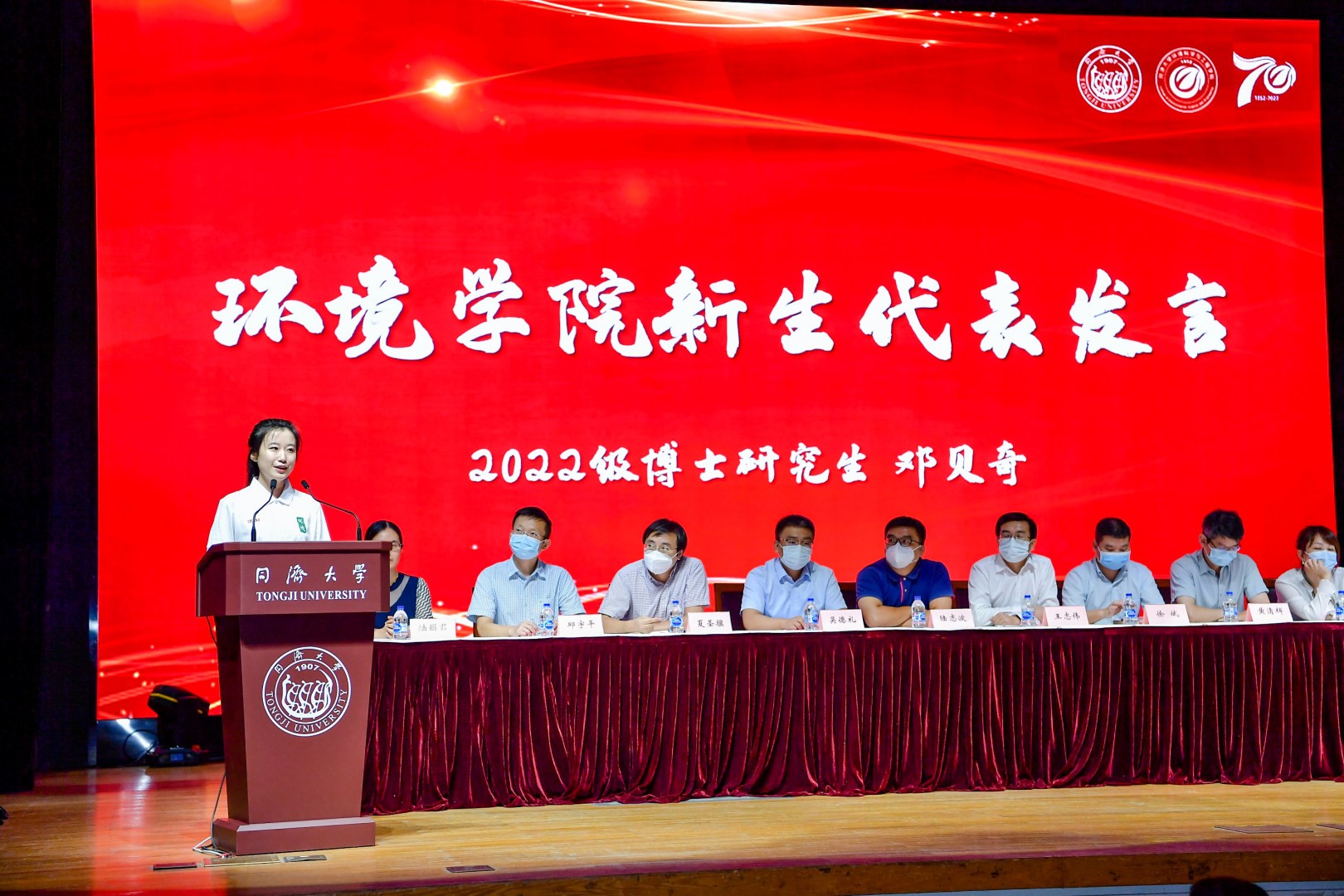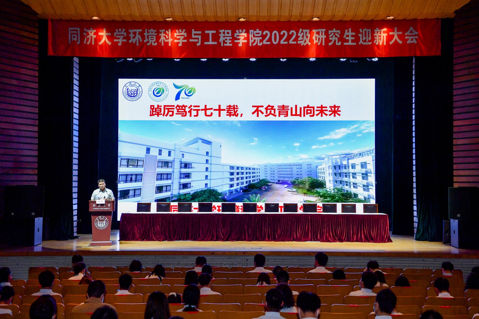 2022年9月27日13时30分,同济大学环境科学与工程学院2022级研究生迎新大会暨“立德树人”专题报告在四平路校区一·二九礼堂顺利举行。院领导徐斌、王志伟、黄清辉、陆志波、王颖、吴德礼、郑雄,系主任夏圣骥、李咏梅、邱宇平,导师代表尹大强,研究生新生班主任等出席,党委副书记陆丽君主持大会。