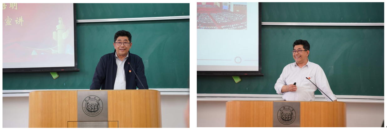 11月29日下午,校常务副校长吕培明教授围绕“学习党的二十大精神”,为我院师生上了一堂精彩生动的主题党课。学院党政班子成员、支部书记、系所负责人及各支部党员、研究生第十八党支部代表80余人线下参会,其他学院教职工160余人线上参会。党课由环境学院党委书记徐斌教授主持。