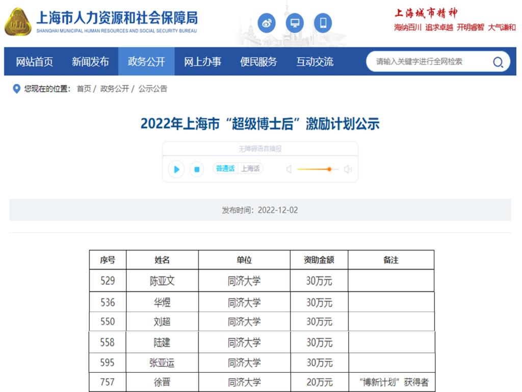 根据上海市人力资源和社会保障局2022年上海市“超级博士后”激励计划资助评审结果,我院陈亚文、华煜、刘超、陆建、张亚运、徐晋6位博士后获批上海市“超级博士后”项目资助,项目获批人数再创佳绩。