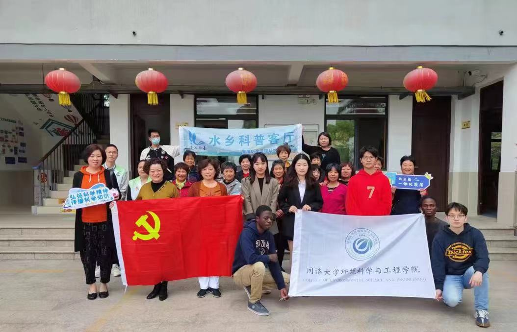 2023年4月21日,在第54个世界地球日到来之际,为深入贯彻习近平生态文明思想,积极响应二十大报告中提出的“推动绿色发展,促进人与自然和谐共生”的中国式现代化发展要求,同济大学环境科学与工程学院办公室支部联合本科生第一支部,依托金泽镇政府、同济大学长三角可持续发展研究院,联合国环境署-同济大学环境与可持续发展学院,围绕“珍爱地球,人类命运共同体”共同目标,组织环境学科优秀的大学生和国际留学生共赴长三角生态绿色一体化发展示范区金泽镇,开展以“同一个地球,同一个家园”为主题的科普和普法进社区活动,同时也开启了长三角可持续发展研究院和金泽镇政府共同打造的以党建为引领的2023年“水乡科普客厅”系列科普和普法活动的序幕。
