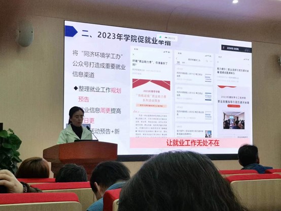 党委副书记陆丽君对学院的就业工作进行了介绍和部署。陆丽君从今年就业面临的形势、23届毕业生目前的就业现状、就业工作中需要注意的问题等几个方面向老师们做了全面介绍,要求全院教师既关注学生的培养过程,也关注学生的毕业去向,积极动用各方面的资源,为学生提供就业渠道和帮助,助力学生充分就业和高质量就业。