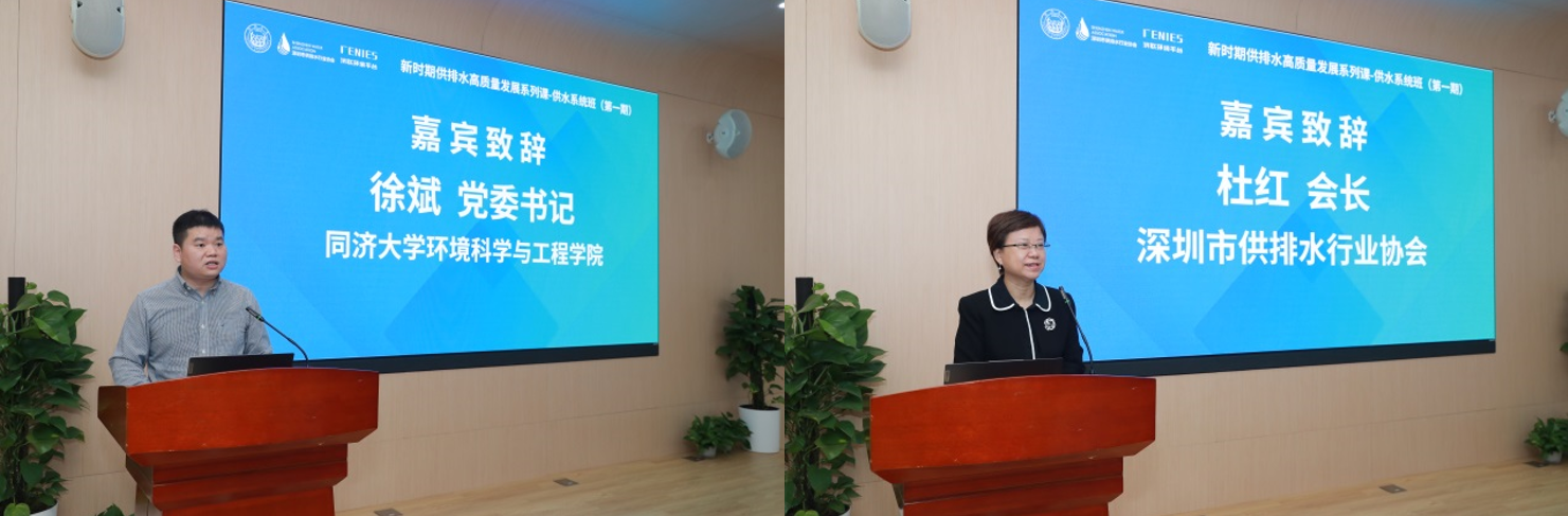学院党委书记徐斌、副书记黄清辉,深圳市供排水行业协会会长杜红,学院邓慧萍教授、沈佳琦老师,同济大学环境学院校友分会秘书长鲁骎等参加了开班仪式。开班仪式由副院长吴德礼主持。