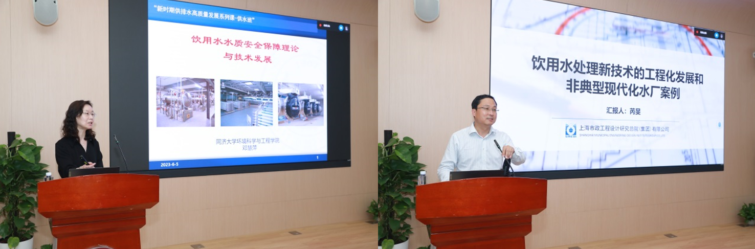 开课仪式结束后邓慧萍教授和上海市政总院副总工芮旻分别为学员授课。两位老师结合自身理论研究与丰富的实践经验,从不同角度系统介绍了饮用水处理的各项前沿技术及其工程应用案例,学员们反响热烈。