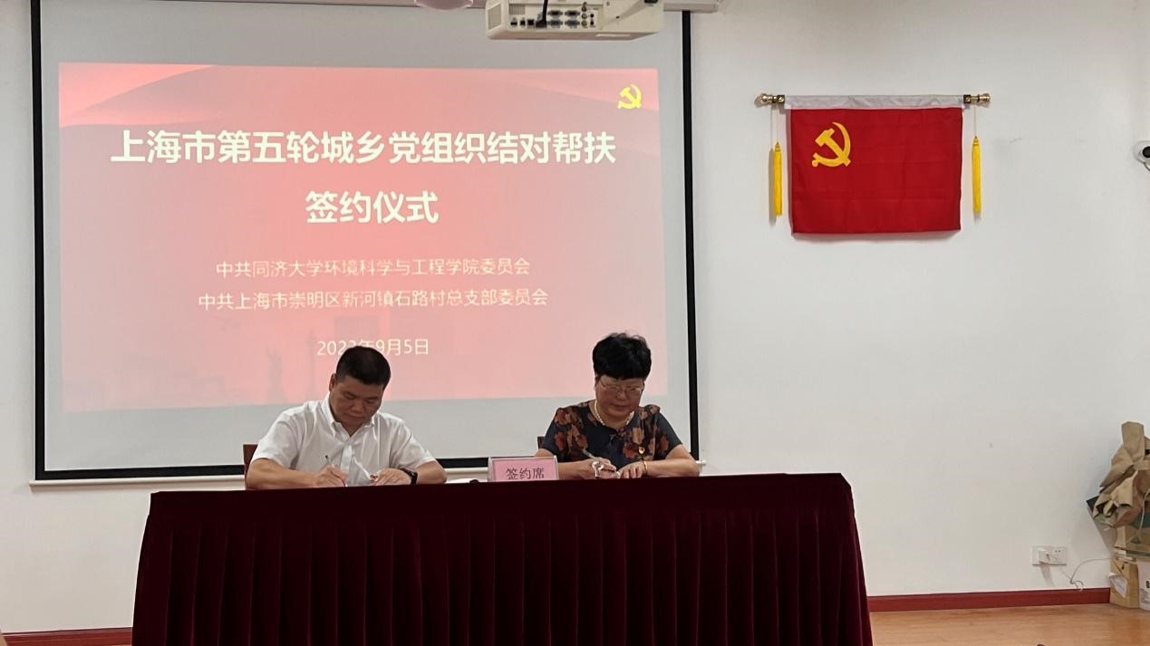 为贯彻落实第五轮城乡党组织结对帮扶的工作要求,9月5日上午9:30,环境科学与工程学院党委与崇明区新河镇石路村党总支举行城乡党组织结对帮扶签约仪式。环境科学与工程学院党委书记徐斌、学院党委委员、环境工程系教工党支部书记尹海龙、学院副教授王荣昌、崇明区新河镇党委副书记邬卫东、石路村党总支书记吴秀华、副书记蒋振兴等参加了本次党组织结对帮扶签约仪式。在介绍上一轮结对帮扶基本情况和本轮结对帮扶各项内容后,徐斌与吴秀华代表双方单位签署了结对帮扶协议。