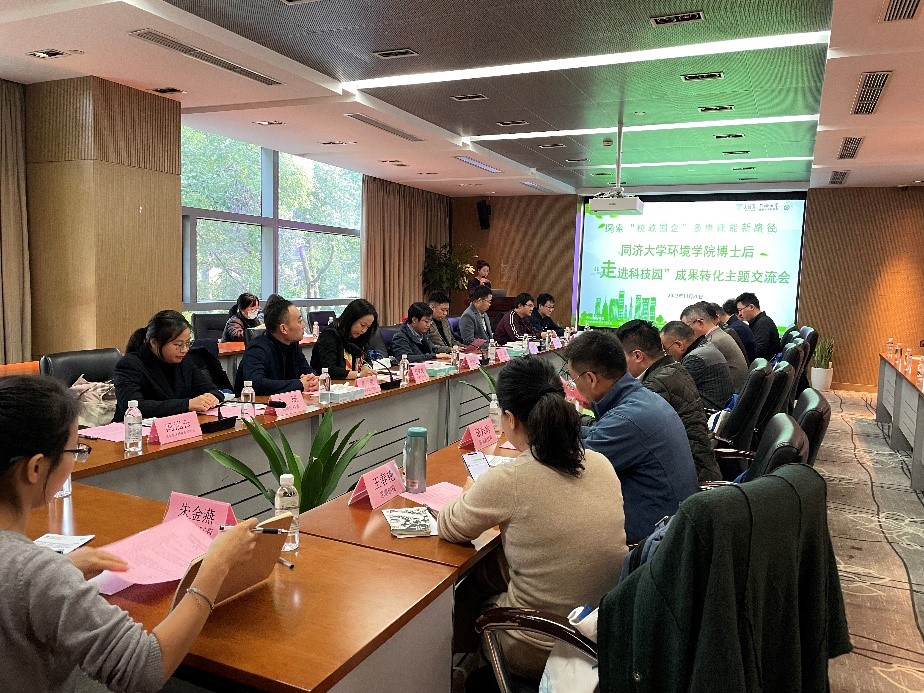 会议首先由同济科技园有限公司总经理钱学标、环境学院副院长郑雄、创新创业学院副院长殷俊锋致辞,强调了推动博士后科研成果转化的意义与初衷并预祝本次交流会圆满顺利。交流会中,上海济联数字科技有限公司创始人鲁骎以 “初心、专注、坚持”为主题,分享了环境人在新媒体及供应链两个核心业务上的创业心得;上海同澜生态环境科技有限公司董事长程辛凤从企业创新定位、核心团队组建等方面出发,分享了环境企业的创业实战经验。之后,环境学院四位优秀博士后分别围绕“膜力焕新——水处理膜再生的先驱者”、“城乡有机固废厌氧资源化与农业高品质应用”、“水中新污染物的快速识别技术及潜在风险预警因子研究”和“人工智能在城市排水系统实时控制中的应用”进行了精彩的技术成果交流。