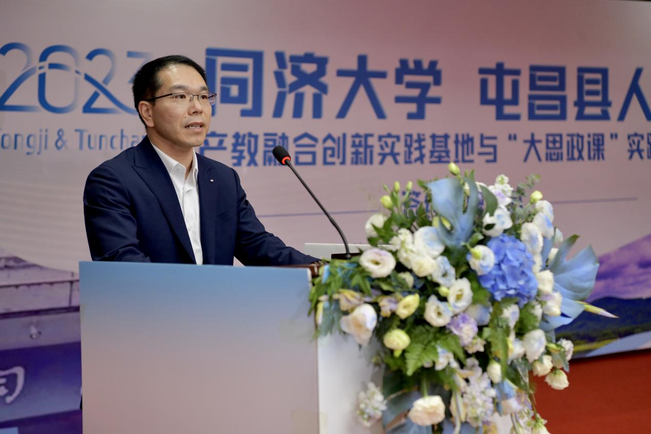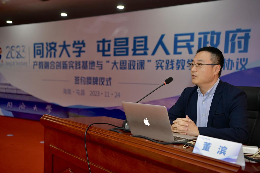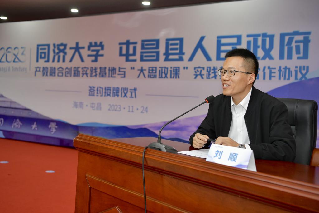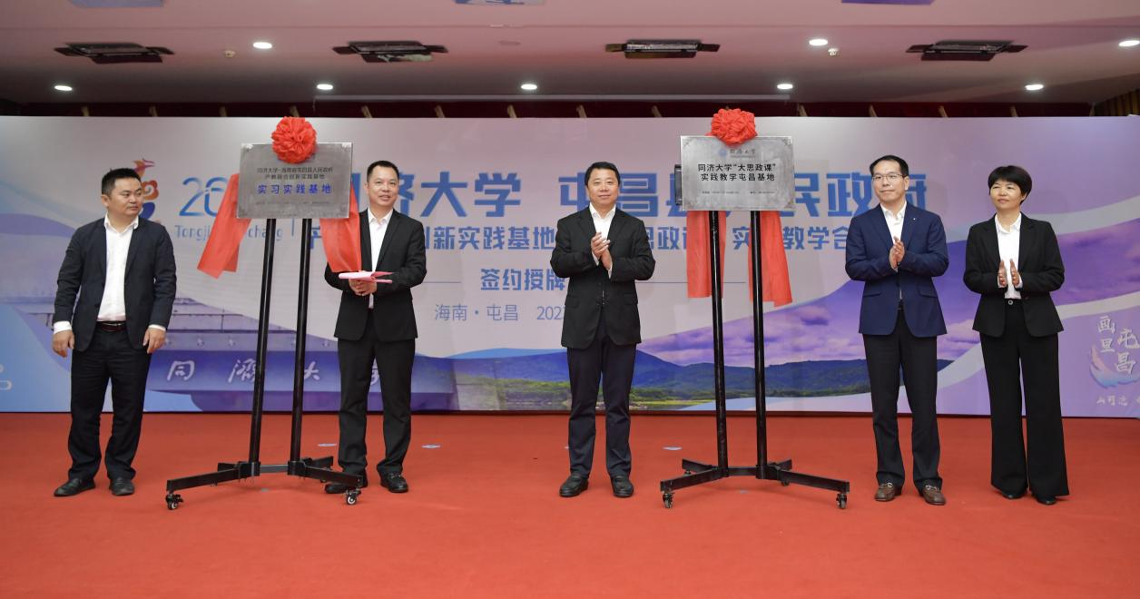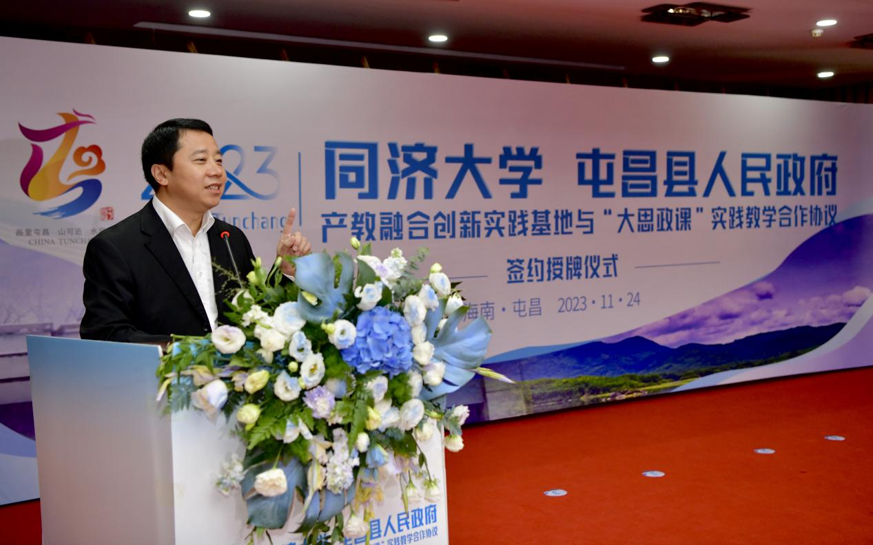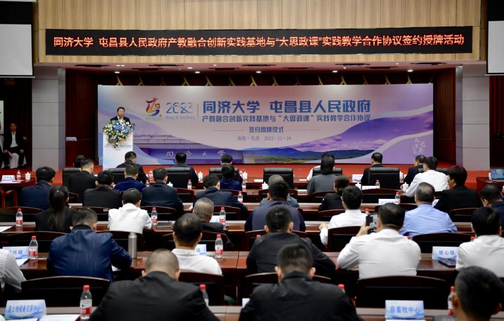 2023年11月24日上午,同济大学与屯昌县人民政府产教融合创新实践基地与“大思政课”实践教学合作协议签约授牌仪式在屯昌举行。同济大学本科生院副院长陆伟,同济大学马克思主义学院副院长刘顺,我院副院长陆志波,屯昌县委副书记、县长赵英杰,屯昌县委常委、副县长何发亮等领导出席揭牌仪式。