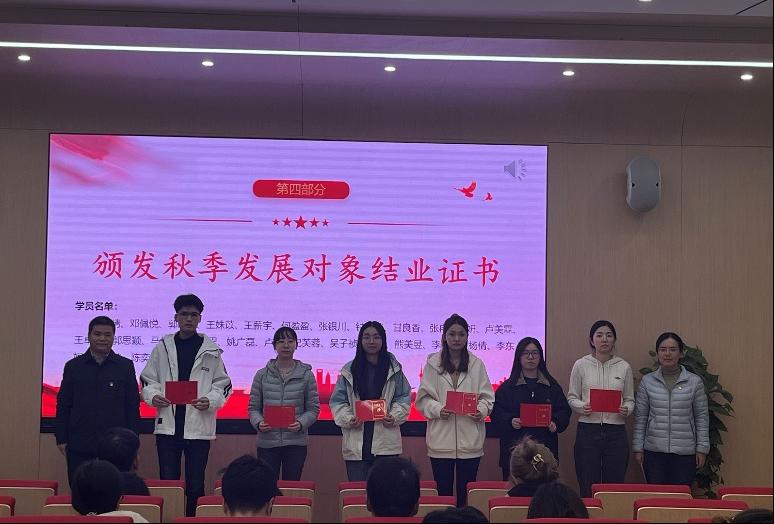 随后,徐斌老师、陆丽君老师、黄清辉老师和黄圣洁老师分别为本次顺利结业的发展对象和积极分子颁发了结业证书。