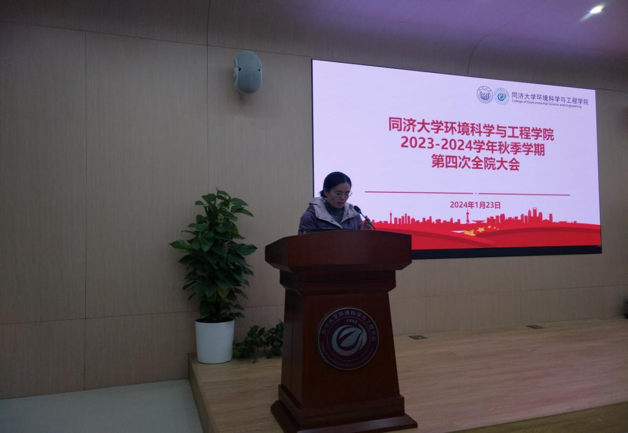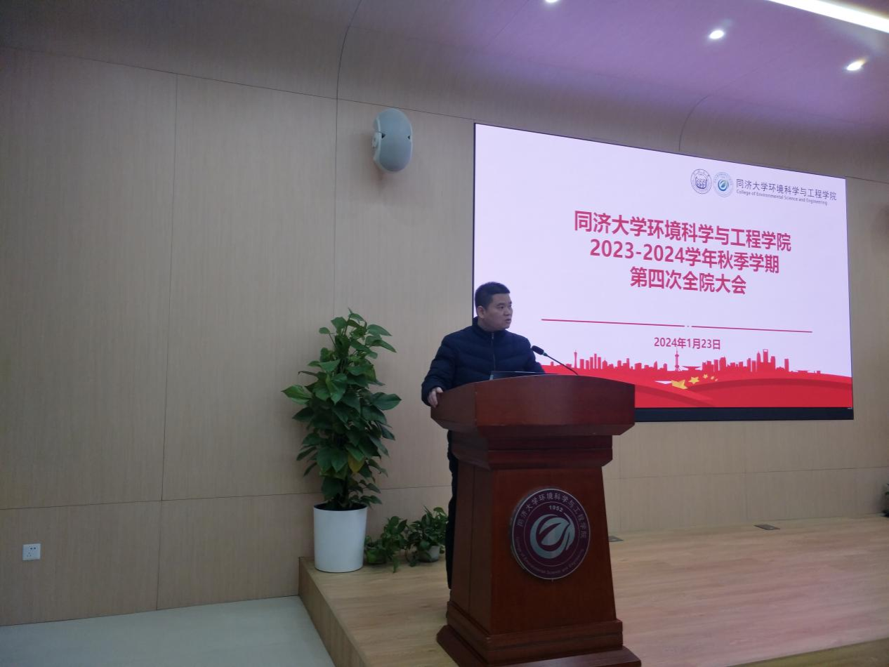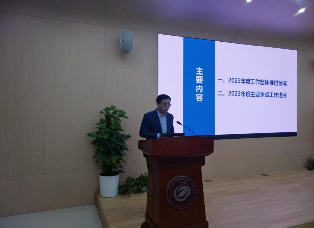 2024年1月23日下午13:30,环境学院在明净楼121报告厅召开2023-2024学年秋季学期全院总结大会。学院党政班子、全体教职员工参加会议。会议由党委书记徐斌主持。