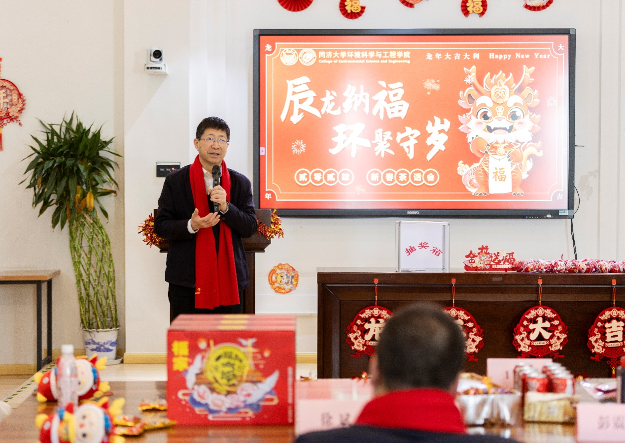 1月26日下午,“辰龙纳福 环聚守岁”——2024年环境科学与工程学院新春茶话会在明净楼四楼报告厅顺利举行。同济大学党委副书记彭震伟老师、环境学院党委书记徐斌老师、党委副书记陆丽君老师、副院长王颖老师及辅导员代表出席活动。近50名留校学生怀着对龙年的美好期盼,在学校、学院的暖心关怀中欢聚一堂,共同感受浓烈的新春氛围。