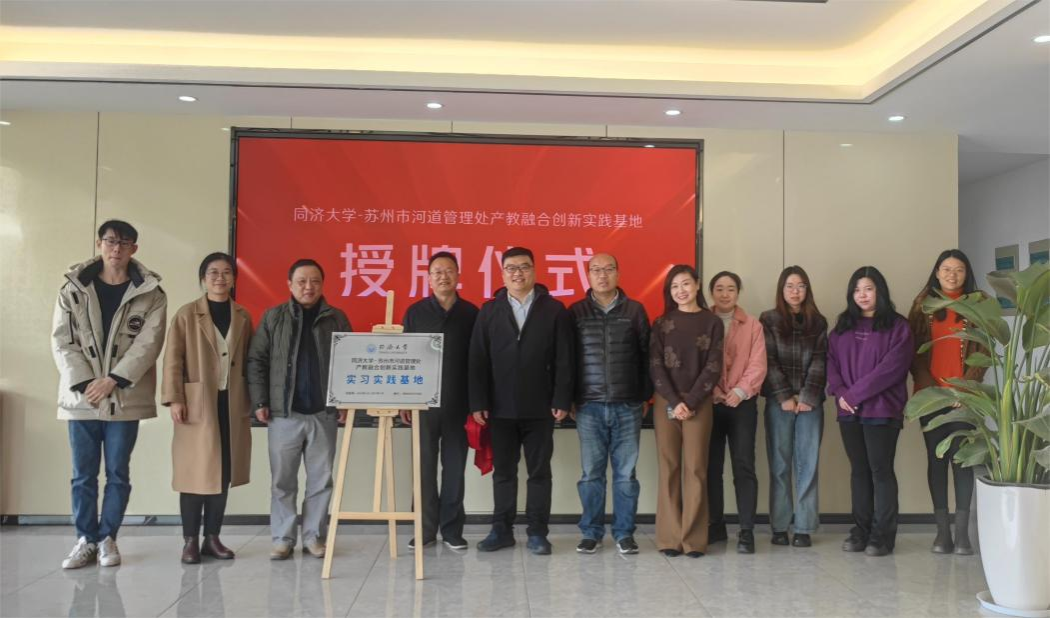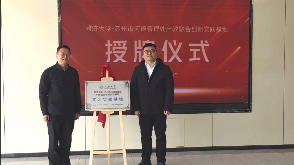 同济大学环境科学与工程学院副院长陆志波,苏州市河道管理处处长钟爱成代表双方为基地揭牌。