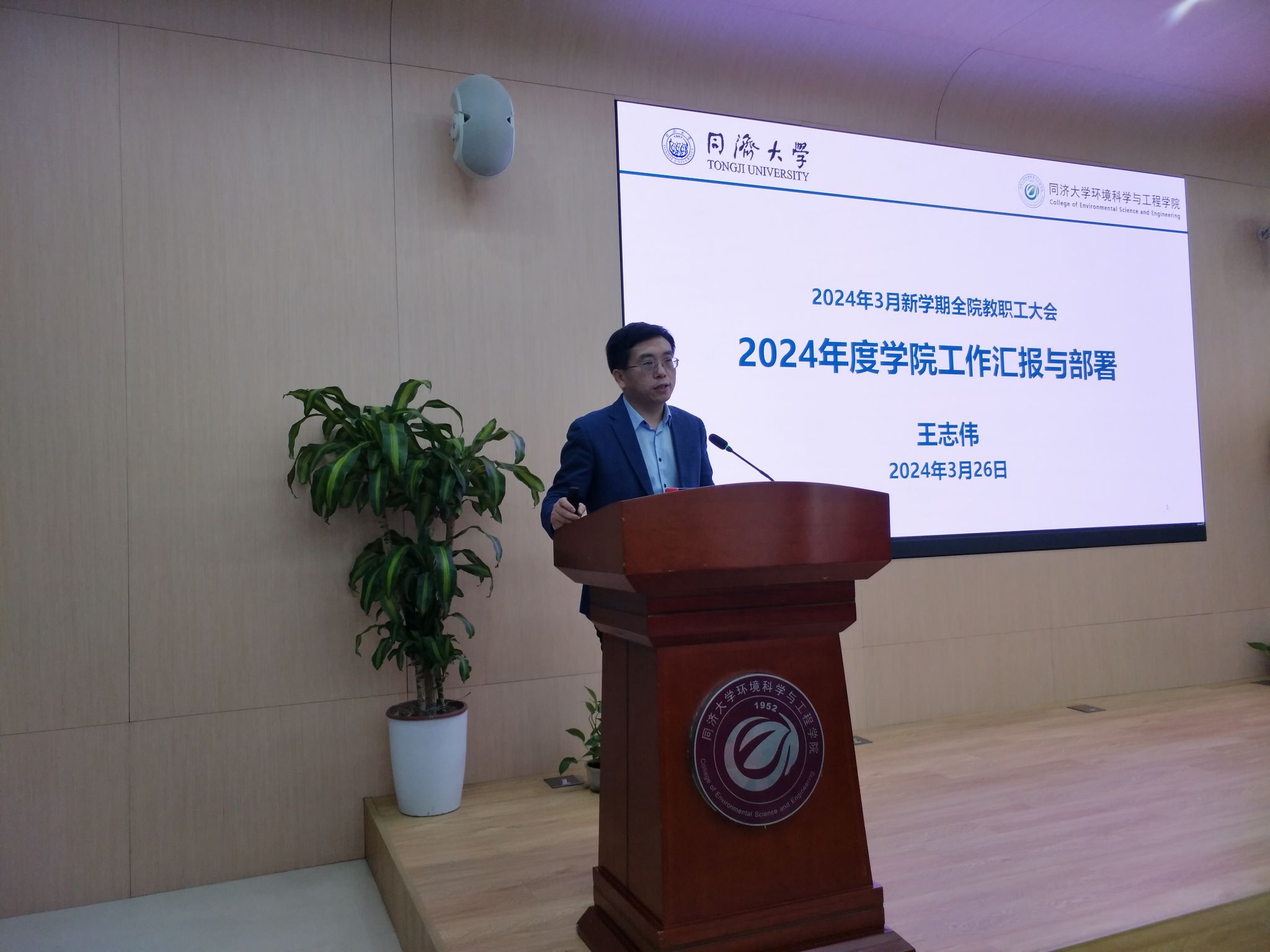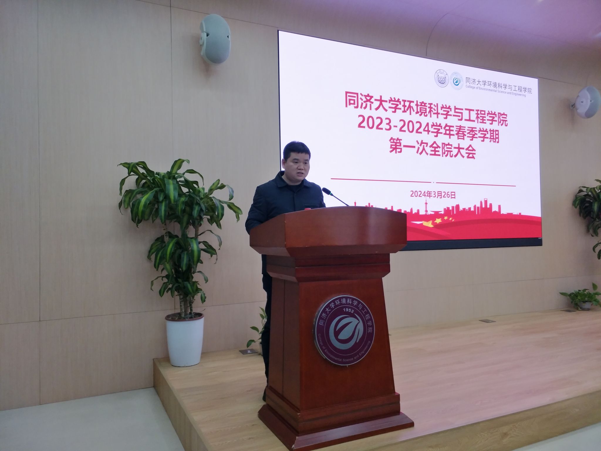 2024年3月26日下午,环境学院2023-2024学年春季学期第一次全院大会在明净楼121报告厅召开。学院党政班子、全体教职员工参加会议,会议由党委书记徐斌主持。