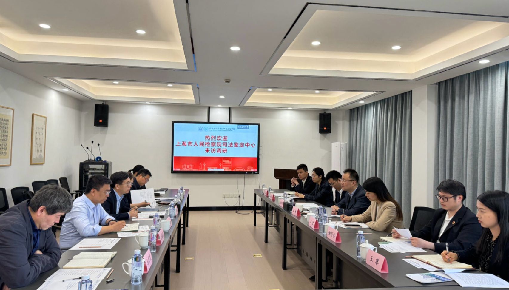 4月24日下午,上海市人民检察院司法鉴定中心主任高峰带队来我院调研座谈,学院院长王志伟出席座谈会,环境科学系教授陈玲、孟祥周、付融冰、马利民、胡霞林参加调研座谈。本次活动由副院长吴德礼主持。