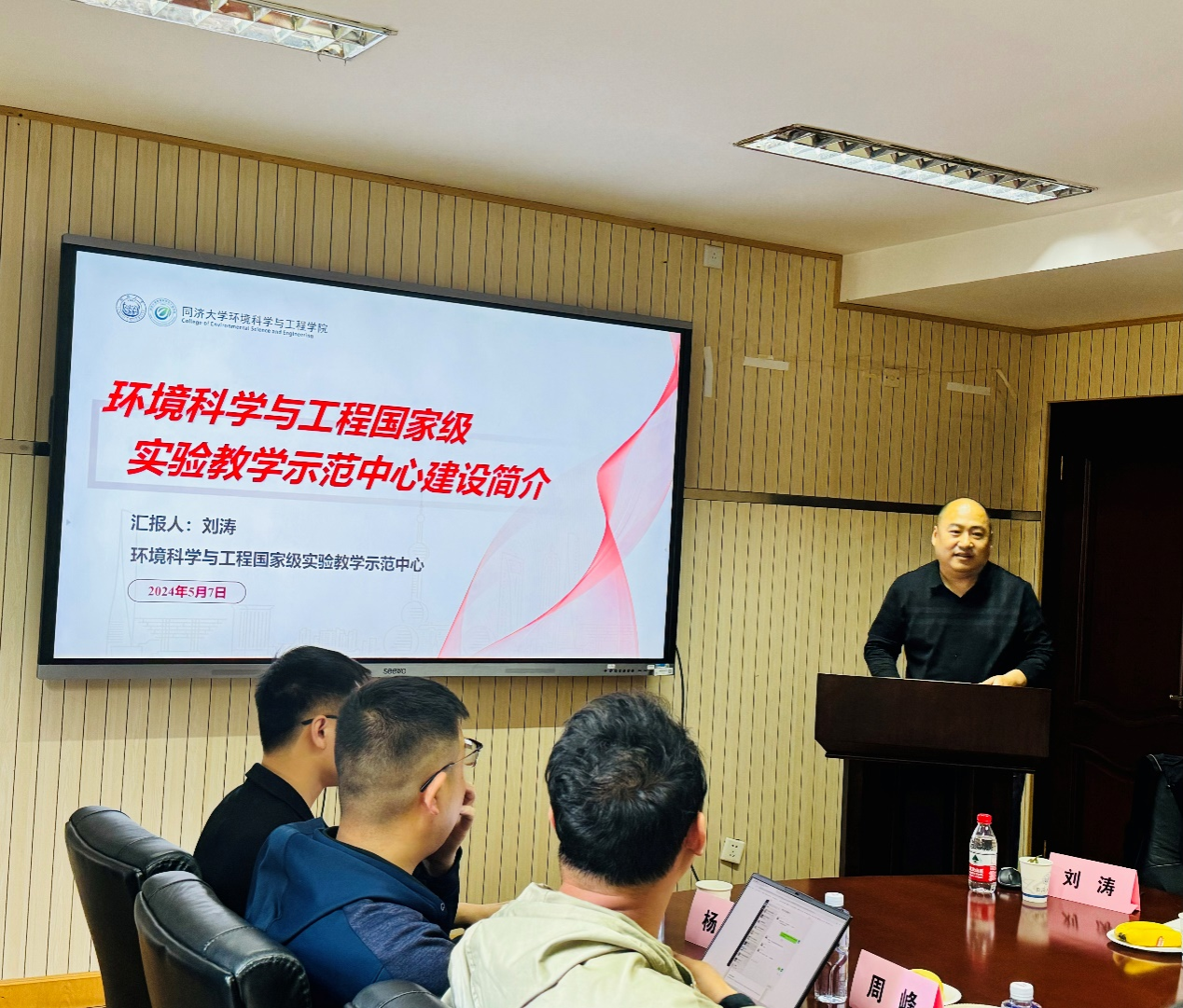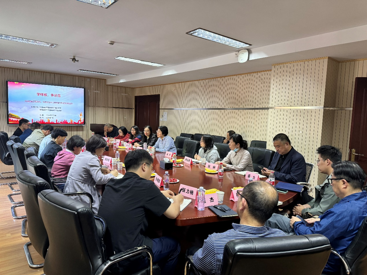 本次活动以探讨实验教学示范中心建设事业的发展为切入点,开展了支部共建座谈交流会,白玉副院长和刘佳副主任分别就交通运输工程学院和环境科学与工程学院实验教学示范中心的建设情况进行了详细介绍。刘涛副主任向大家介绍了环境科学与工程学院国家实验教学示范中心的基本情况,包括实验中心的规模、党建工作、实验教学、特色成果等方面。