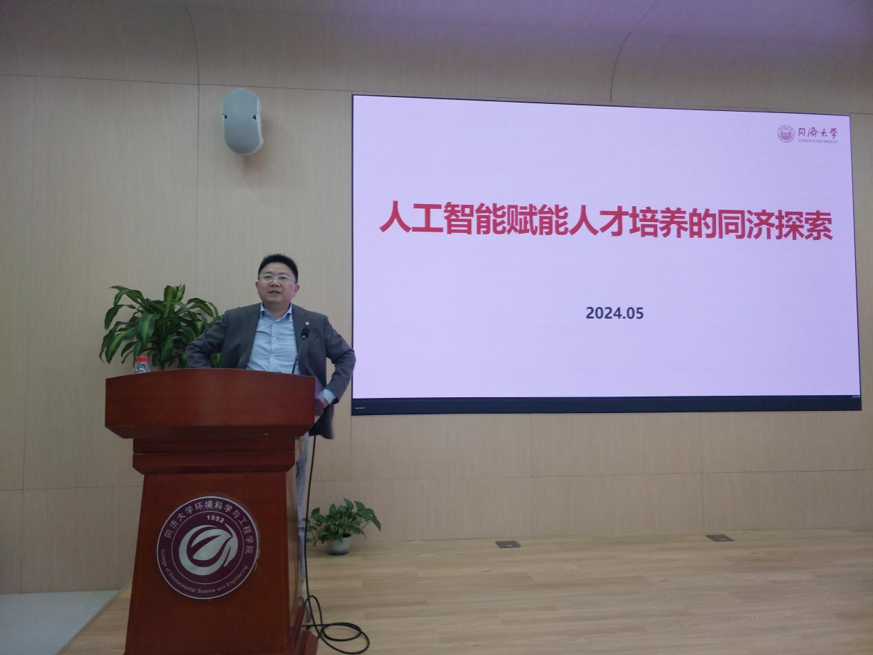 吴志军作题为“人工智能赋能人才培养的同济探索”的报告。他从人工智能赋能人才培养体系、未来技术学院建设、涵养教师人工智能素养等三个方面进行了重点介绍。他指出,人工智能将带来人才培养理念、办学模式、教学目标等全方位变革。在同济大学以新时代“三化”促进高质量发展的背景下,人工智能将深度赋能课程体系、实践体系。同济大学未来技术学院建设将立足贯通式培养体系、模块化培养方案、“1+1+N”领域核心团队建设,旨在打破“院系制、学科化”的办学模式,积极推进跨学科人才培养改革。同时他也对提升教师人工智能素养相关举措进行了介绍。报告取得了强烈反响,对推动学院人才培养工作形成了良好成效。