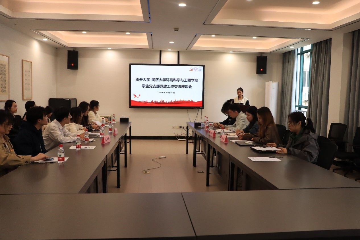 2024年11月15日下午,南开大学环境科学与工程学院与我院学生党支部党建工作交流座谈会于明净楼316会议室举行。
