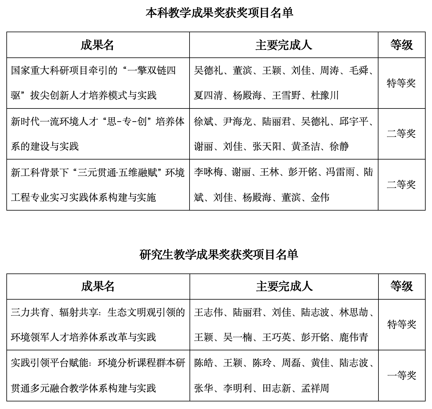 日前,学校公布了2024年同济大学教学成果奖获奖名单。环境学院共计5项教学成果奖获奖。其中,特等奖2项,一等奖1项,二等奖2项。