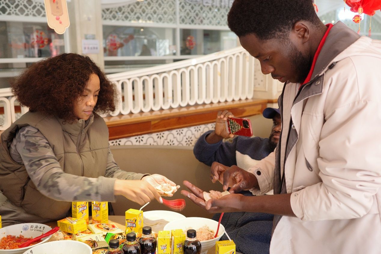 在“共包幸福‘饺’”环节,同学们进行速度和质量的角逐,现场气氛热烈,同学们争相展示包饺子技巧,评选出了数量最多奖和质量最好奖。接着师生们一同品尝了自己亲手包的饺子,在体验中华传统文化中感受着劳动带来的喜悦和满足。