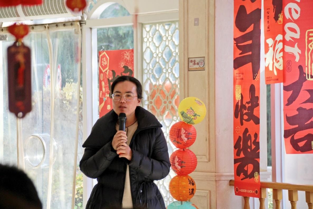 陆丽君老师代表学院向留校学生致以新春的问候与美好的祝福,勉励大家达成寒假期间学业、生活上的目标,常与家人朋友联系,同时特别关注个人和实验室安全,度过一个充实愉快的寒假。