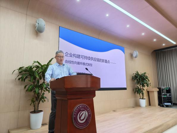 康毅博士分享了个人职业经历以及供应链全球发展对于企业发展的重要性。他首先介绍了环境领域专业知识对他目前工作的重要意义,鼓励环境专业的同学在校期间获取扎实的专业知识储备,同时注重沟通、交流、实践能力的锻炼。他进一步分析了当代企业在通过供应链实现企业财务目标的同时,如何确保经济发展与自然环境之间的协调发展;针对全球贸易所带来的挑战,企业如何担当起环境保护的责任,实现循环经济的目标。此外,康毅博士还提到,在优化供应链时,要减少备件不必要的移动,达到降本以及减排的相同目标。