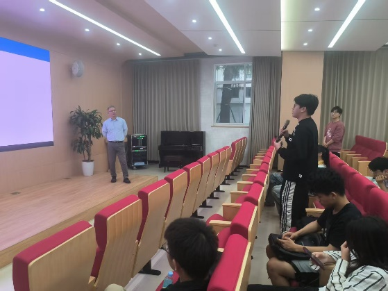 我院70多名师生参加了讲座。在讲座的提问与交流环节,现场气氛热烈,师生积极提问,康毅博士对大家提出的循环经济、全球贸易以及学生应聘等问题都逐一进行了详细的解答。